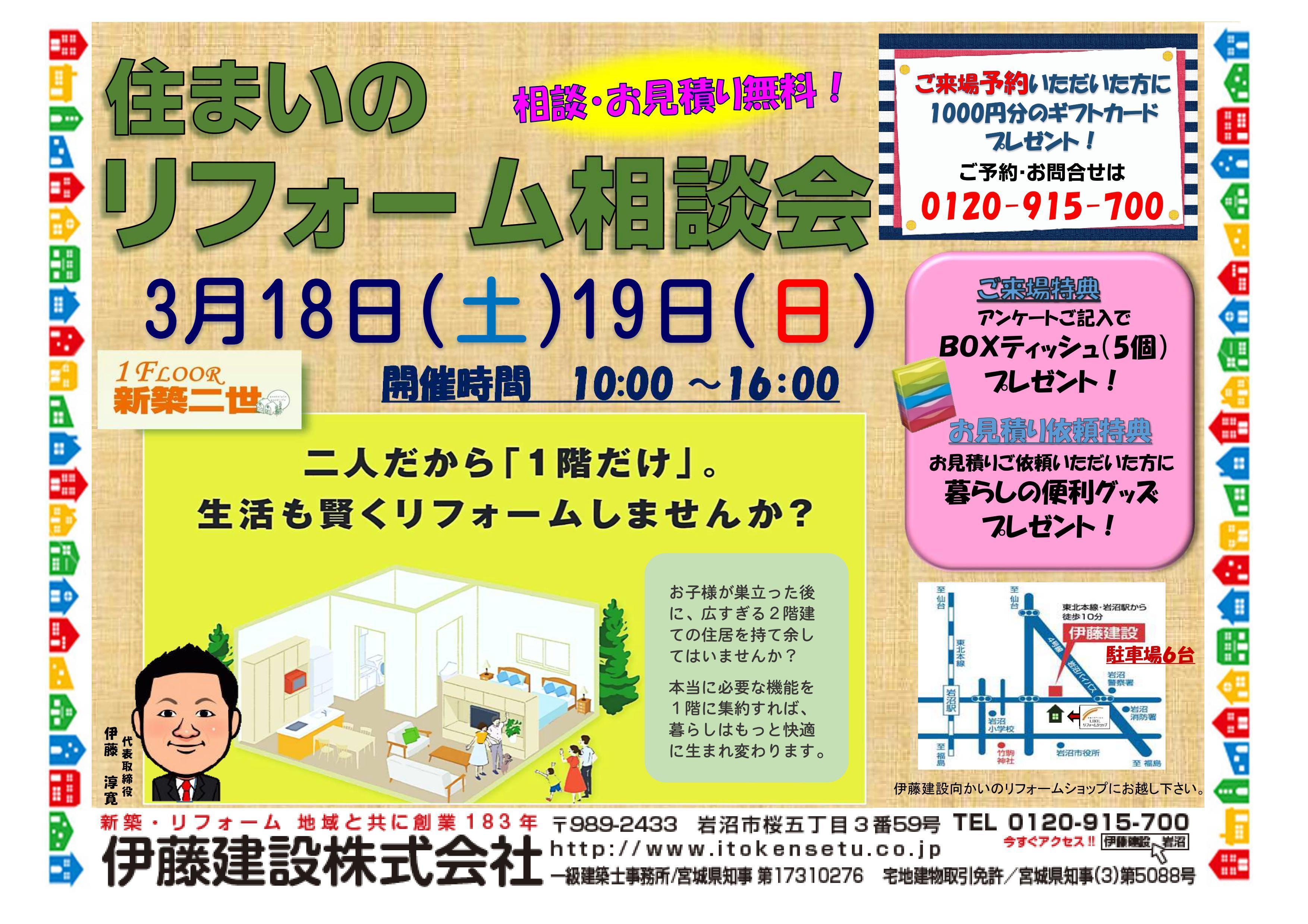3月17日(土)、18日(日)にリフォーム相談会を開催します。