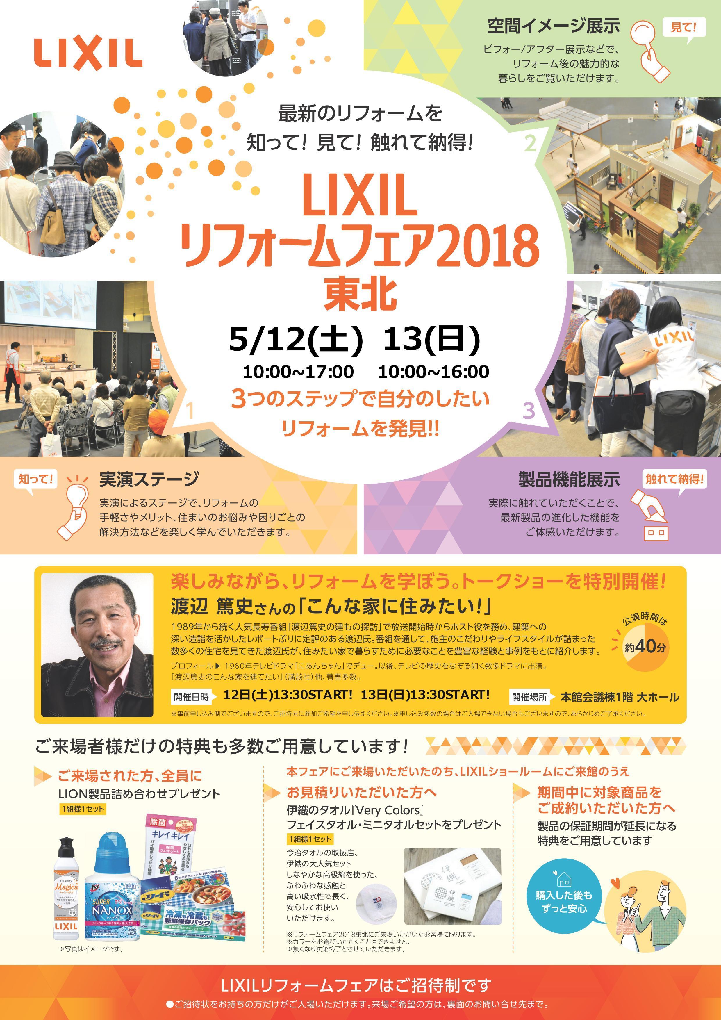 5月12日(土)、13日(日)夢メッセみやぎにてLIXILリフォームフェアが開催されます。
