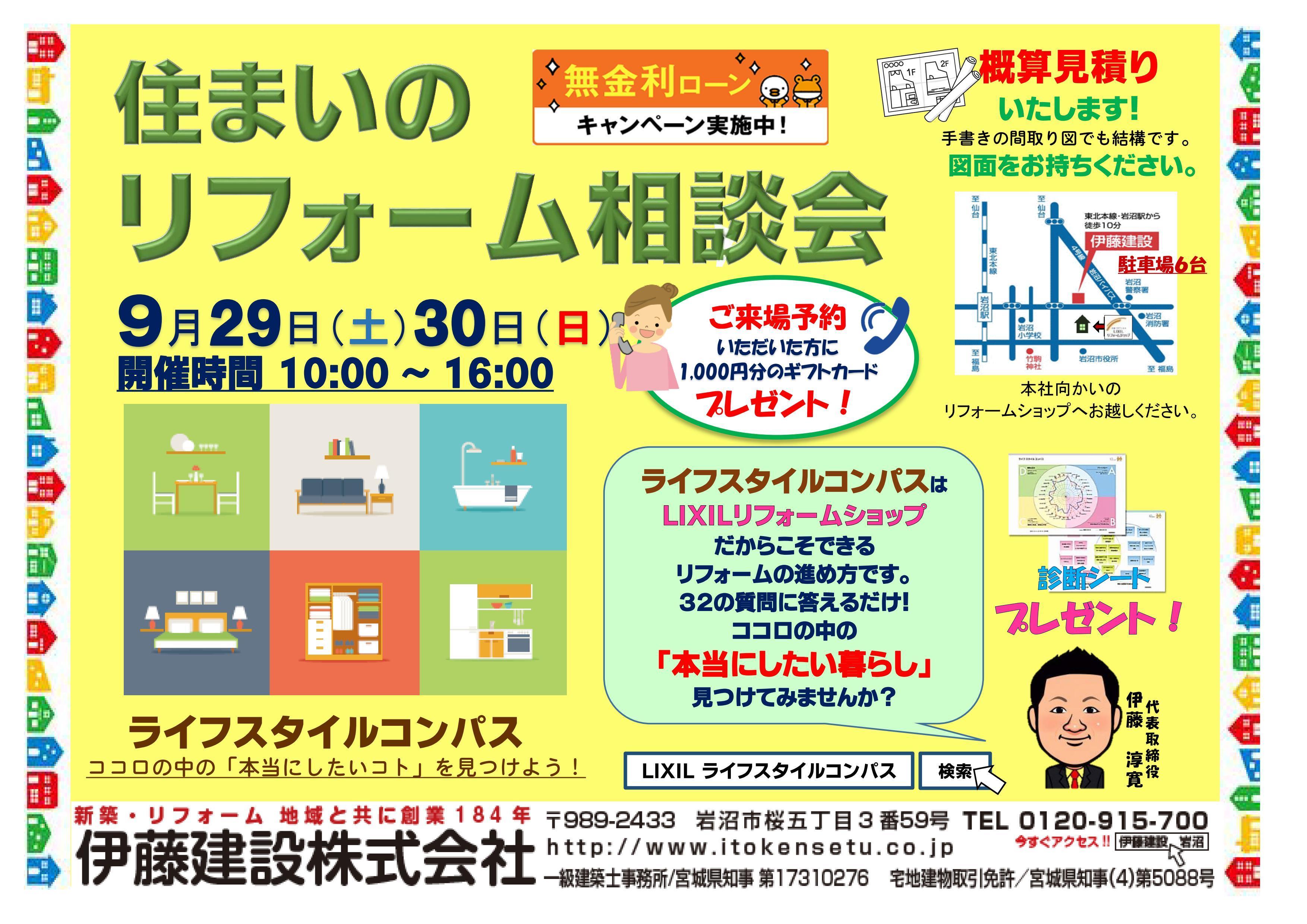 9月29日(土)、30日(日)に住まいの相談会を開催します。