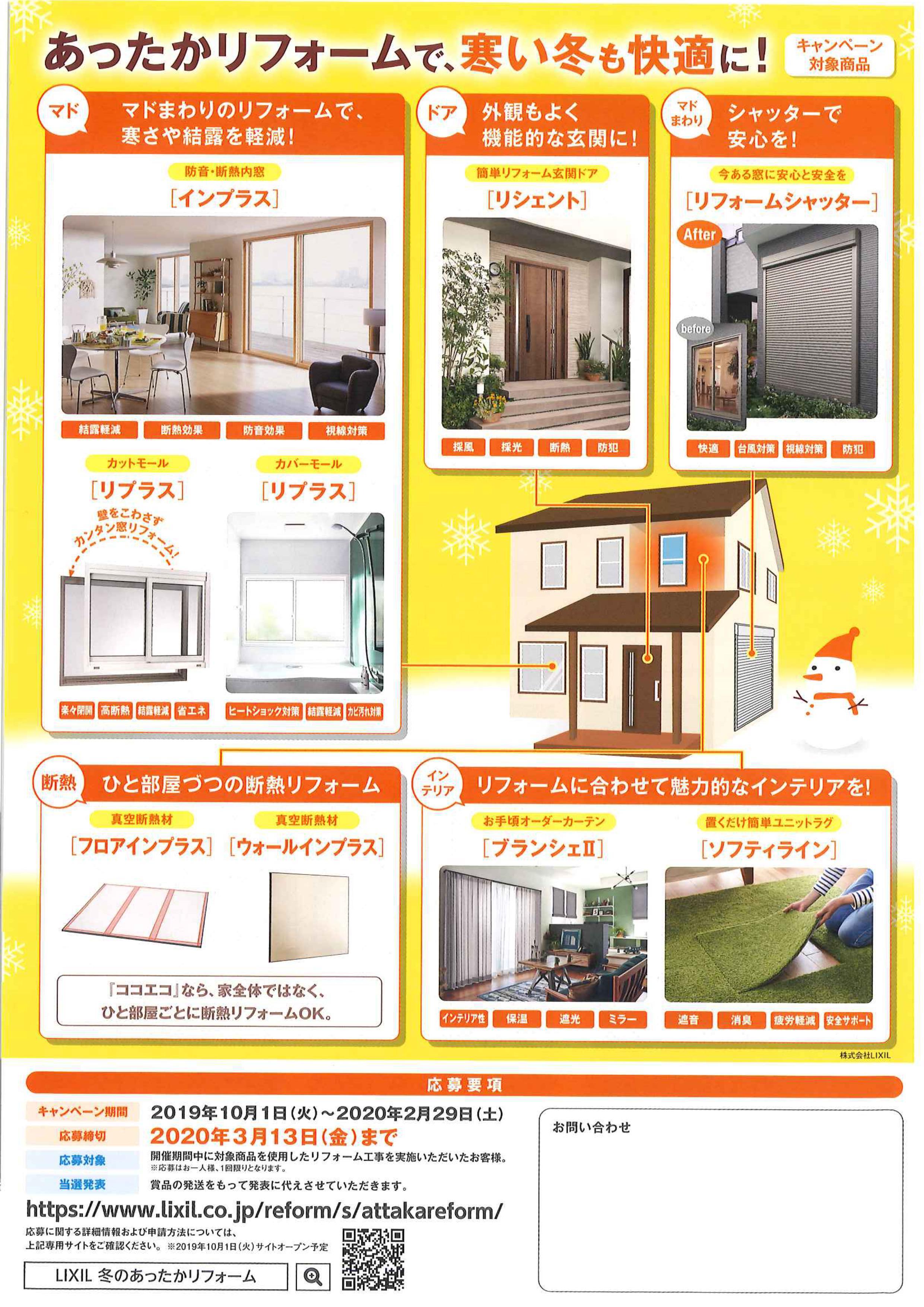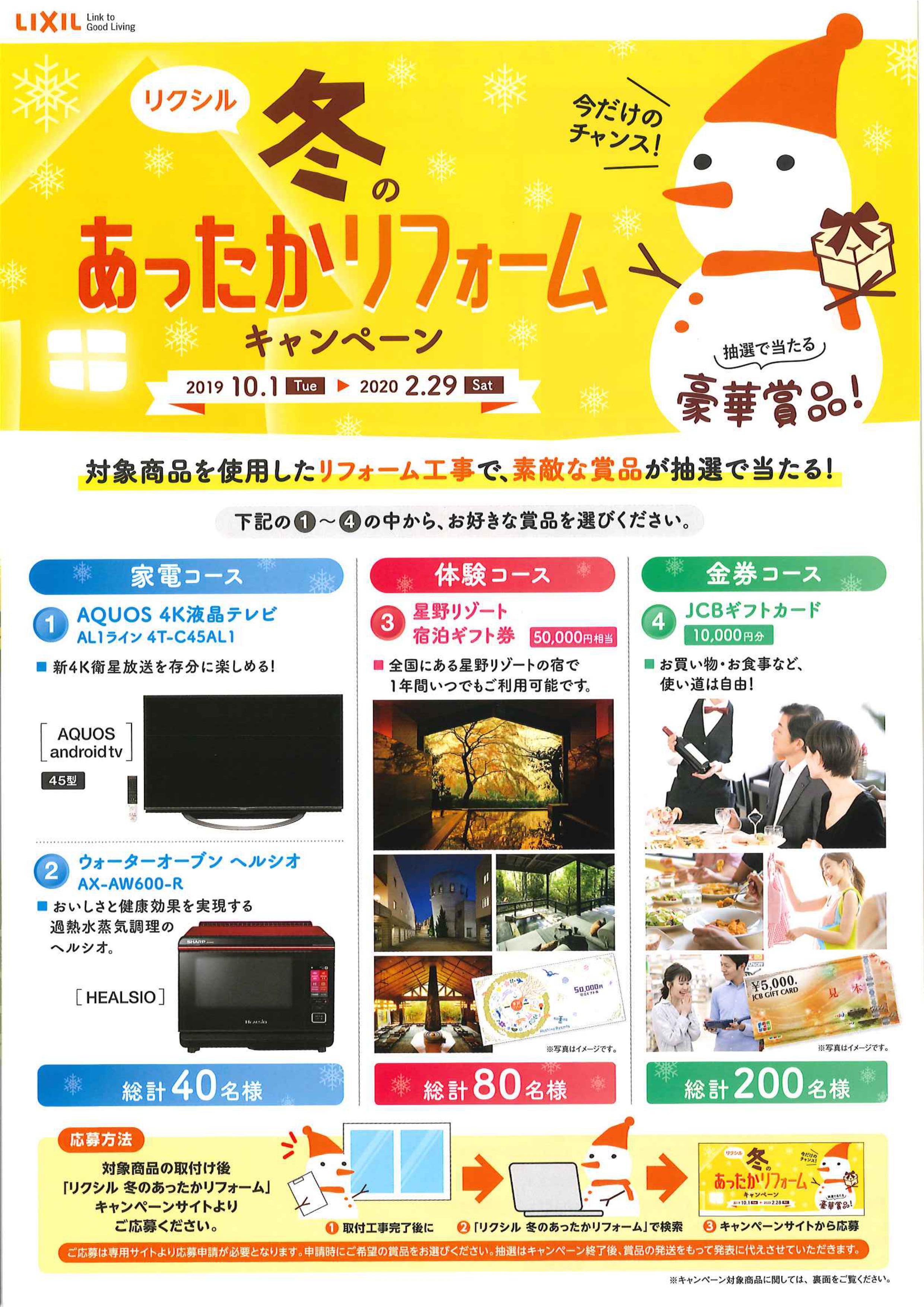 一覧へ戻る10月1日より『冬のあったかリフォームキャンペーン』が始まりました。