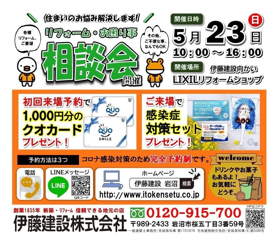 5月23日(日)にリフォーム・お困り事相談会を開催します。