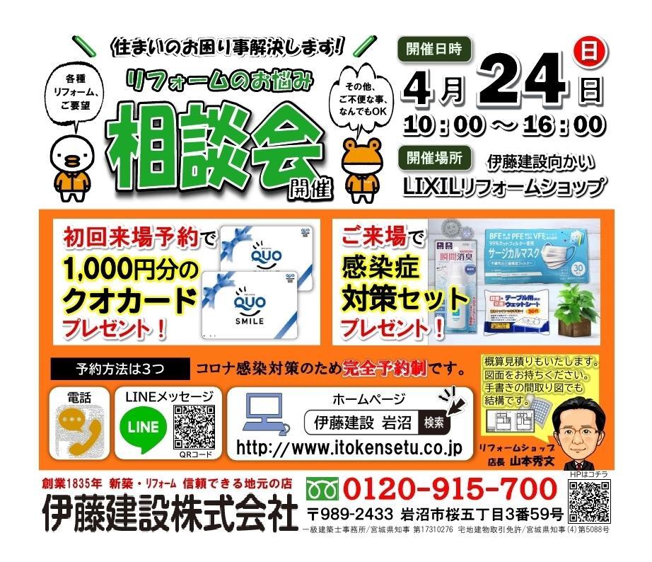 4月24日(日)に『リフォームのお悩み相談会』を開催します。