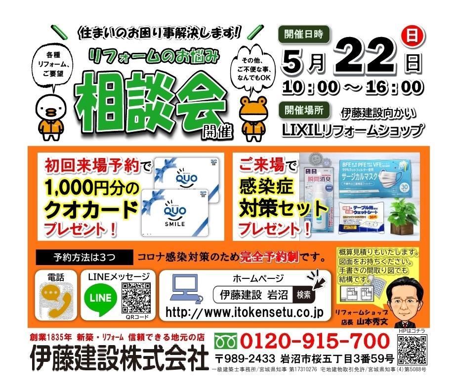5月22日(日)に『リフォームのお悩み相談会』を開催します。