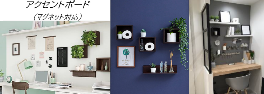 アクセントボードをデスク前の壁の幅いっぱいに貼れば、
