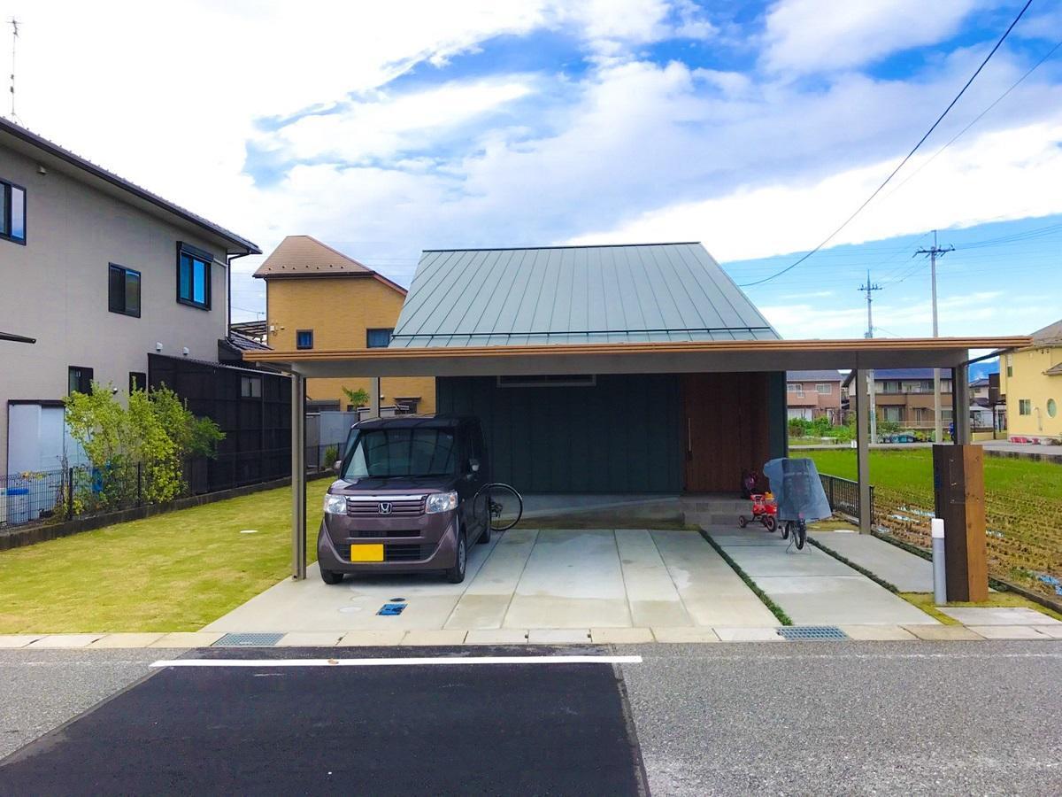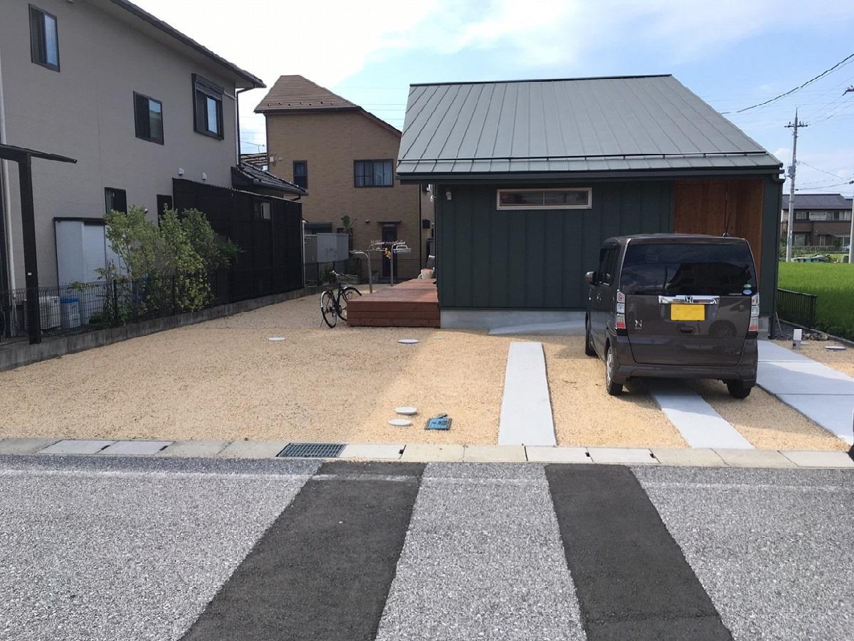 車と自転車を守るカーポートが完成しました! これで雨に濡れない車の乗り降りが実現しますね! お客様ご希望の「BBQセットが収納できる倉庫」の設置も完了です! ぜひとも晴れの日は、お子様と芝生の上でステキな時間をお過ごしください!