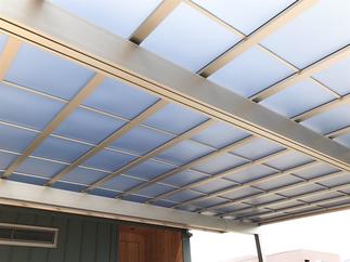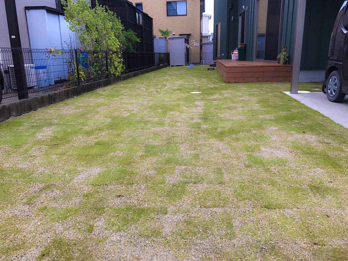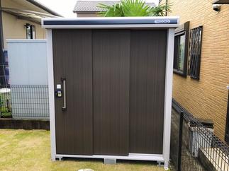 雨の日は車から玄関までの移動で、お客様自身も濡れてしまう状態でした。本体と屋根枠の色は8パターンの中からお選び頂けます。工事完了後は雨に濡れる事もありませんね♩お客様からのご要望で、お庭には芝生を敷きました、お子様が遊ぶのにより良い環境になりました。屋根材は3タイプから選べます、今回お客様が選ばれたのは、熱線吸収ポリカーボネート板。UVはほぼ100%、熱線も70%カット出来ます♩倉庫も設置完了で収納もばっちりです。