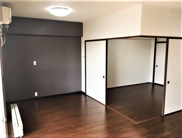 マンションの一室をリノベーション!畳からフローリングに変えて、広々とした空間に生まれ変わりました。水まわりの掃除が簡単など、生活しやすい所もポイントです。もちろん機能的なだけではなく、アクセントクロスでおしゃれな雰囲気もとても、魅力的ですよね♩