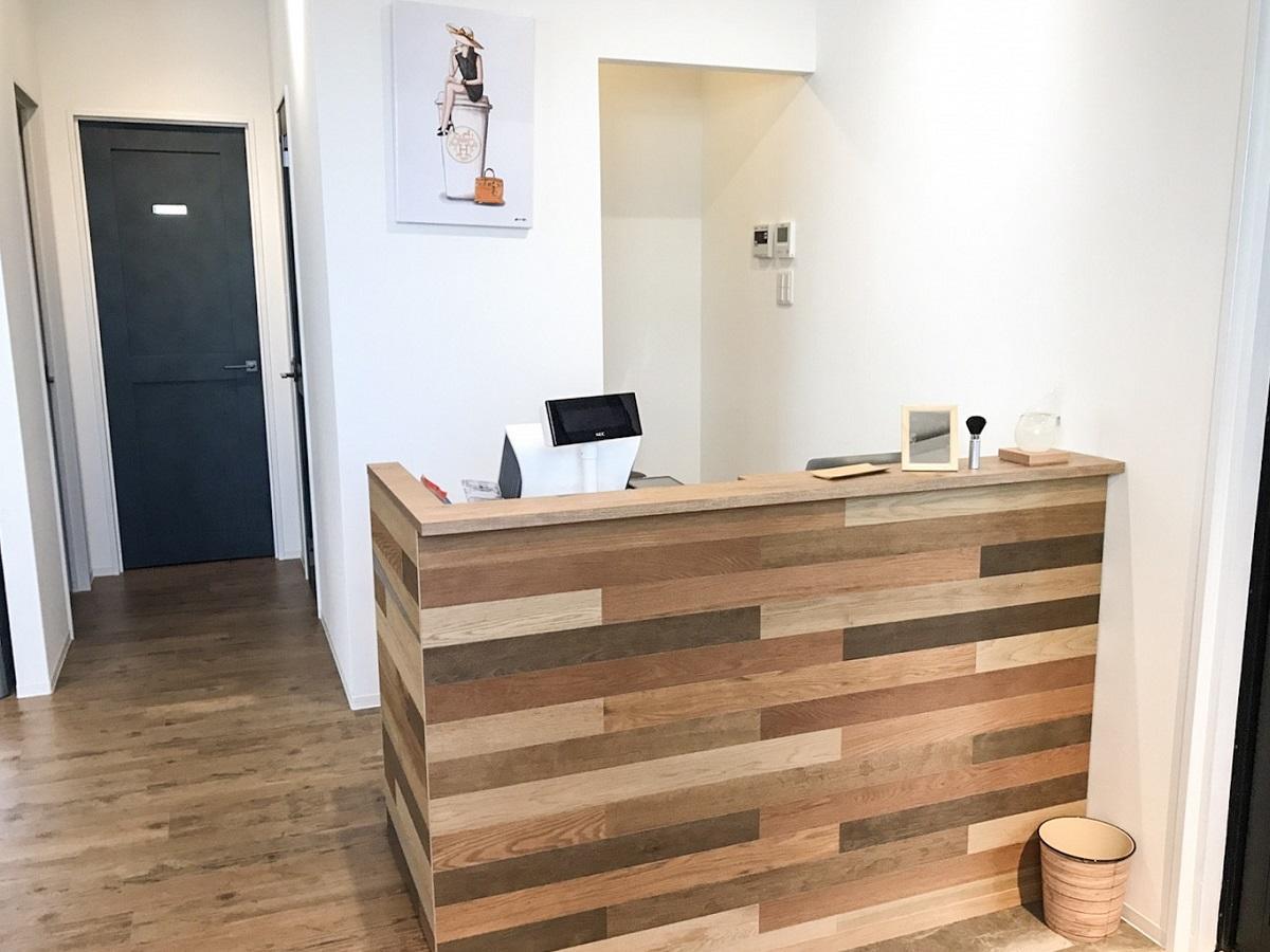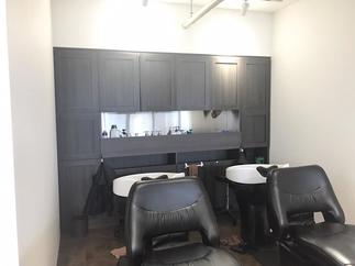 美容室の店舗リノベーション!ナチュラルテイストがオシャレな美容室の誕生です!ご来店頂いたお客様に素敵な時間をお過ごし頂ける空間を目指しました!お客様をお出迎えする玄関入口には不燃化粧板を使用し、エントランスとカウンターにインパクトのある造作工事を行いました。造作部分はこれだけではなく、セット台や雑誌の収納ラック、シャンプースペースの収納棚などたくさんあります。全て、オーナー様のご要望を伺って作成したオーダーメイドです。シャンプースペースの仕切りには、ブロックを積み上げてアクセントにしました。
