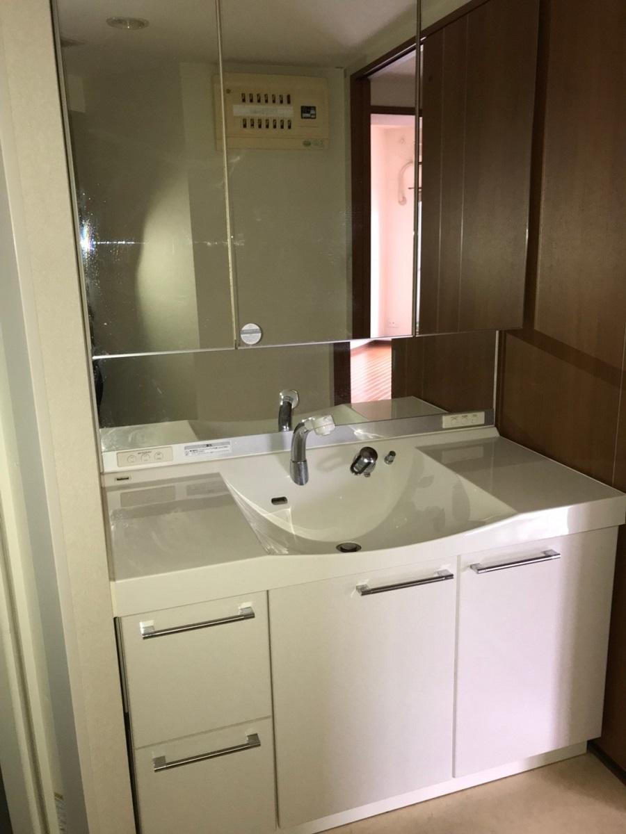 築10年マンションの洗面所リフォームのご紹介です。中古マンションに住み替えされ、それに伴い水回りを全て入替させて頂きました。