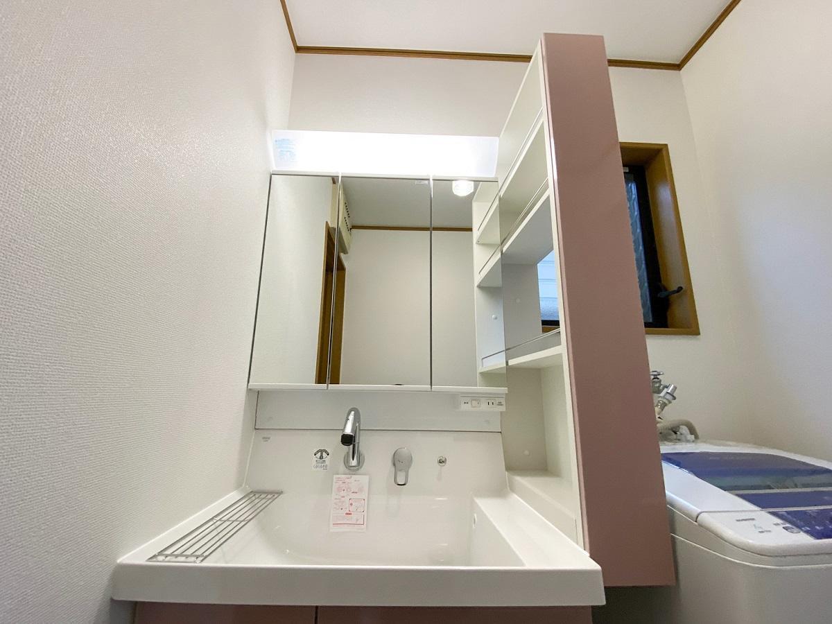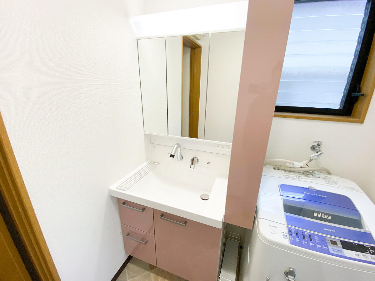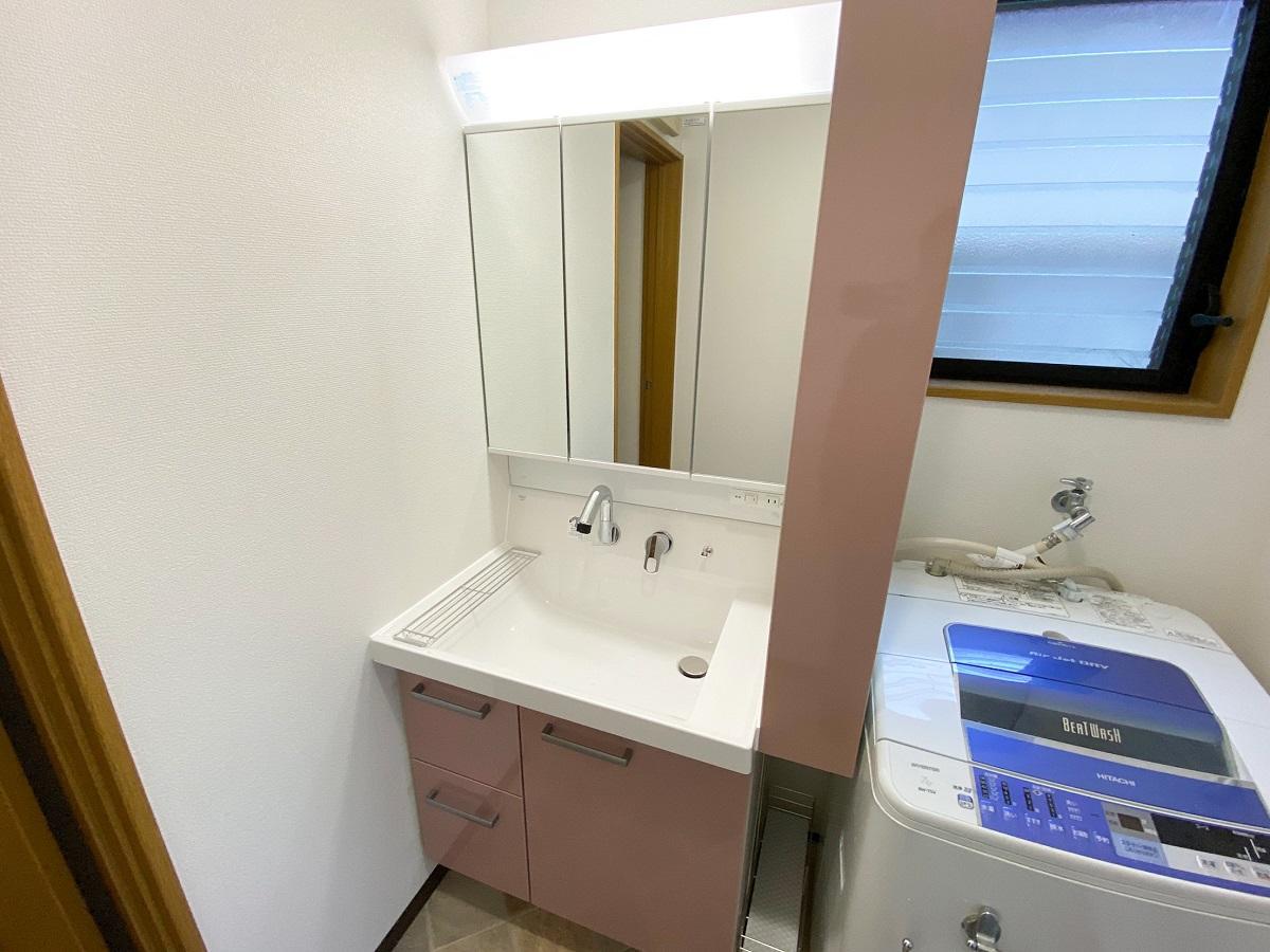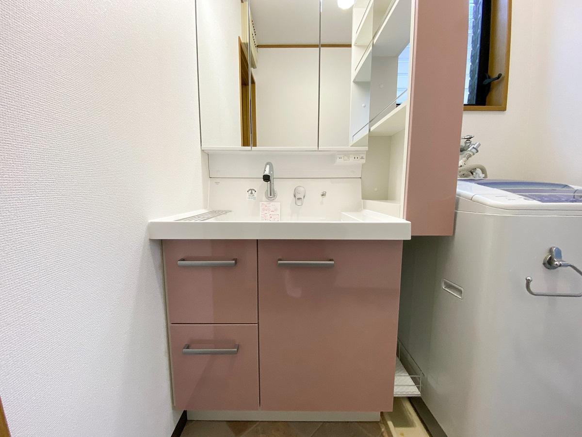 今回はLIXILの【ピアラ】を設置させて頂きました。以前は収納が少なく、小物を収納するスペースが限られていましたが、ピアラは限られたスペースの中でもたっぷり収納することができるので、出しっぱなしだった小物などもスッキリとします。扉カラーはスモーキーピンクをお選び頂いたので明るい雰囲気に仕上がりました。ご縁頂きありがとうございました。