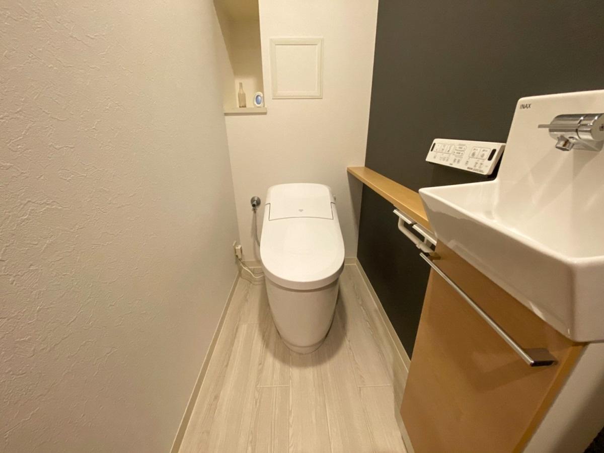 LIXILの【プレアスLS】を設置しました。 従来の陶器ではできなかった「ガンコな水アカ」や「汚物」などどちらも簡単に落とせるのでお掃除がとても楽な衛生陶器です。 使いやすさにこだわっており、曲線を生かしたデザインでコンパクトなフォルムなので、ゆったりとした空間になり、落ち着いたトイレになりました。