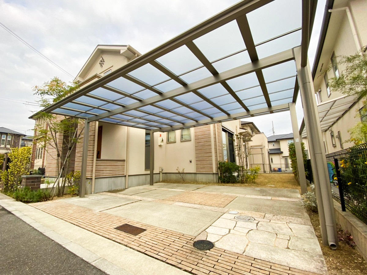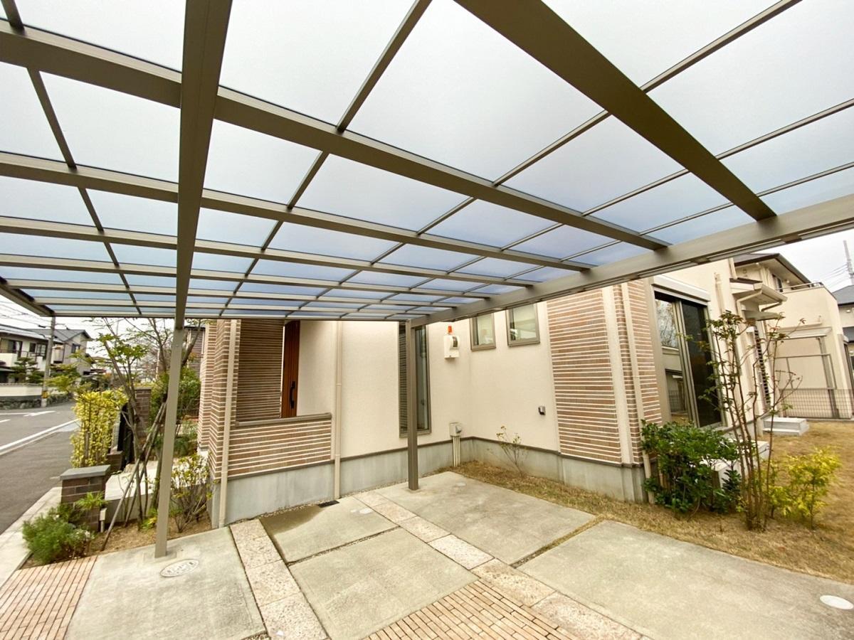 LIXILのネスカFワイドを設置させて頂きました。 サイズもお庭にピッタリのものを施工させて頂きスタイリッシュな仕上がりになりました。 既存建物をご購入されての工事になりましたので、伸びっぱなしなっていた庭の草木の剪定もご依頼頂きました。