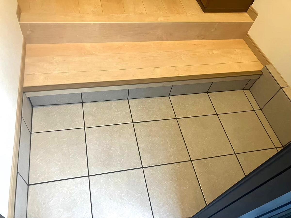 所有されている連棟2軒を1つにしたいとのご相談を頂きました。 接している壁を破り、間取りも変更してとても広々とした空間が生まれました。 1つになった玄関は土間にタイルを施し、美しく仕上がりました。 クロス・天井はホワイトでまとめ、フローリングも明るい色目で全体的に開放的な印象です。 お孫さんがご誕生されるとのことで、ご家族が集い賑やかな場面が増えることと思います。
