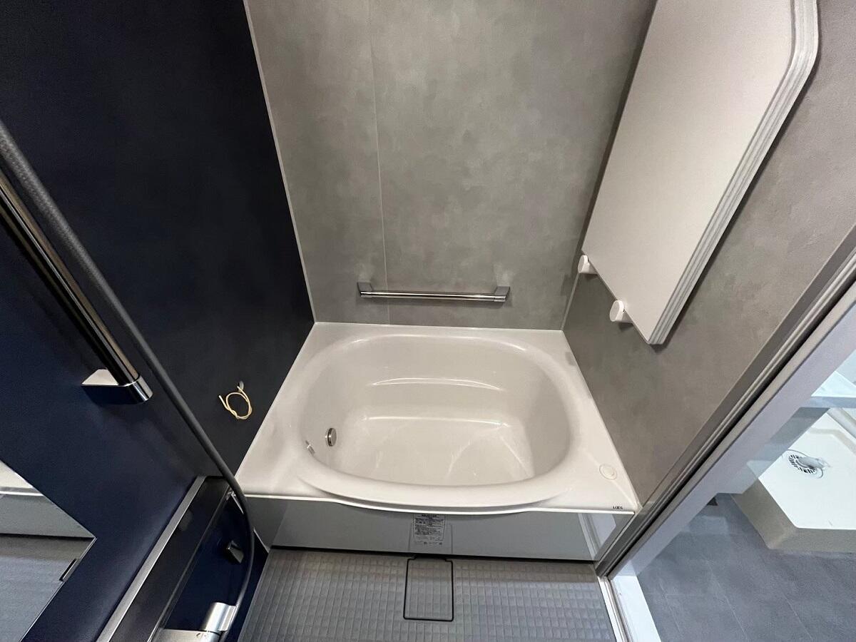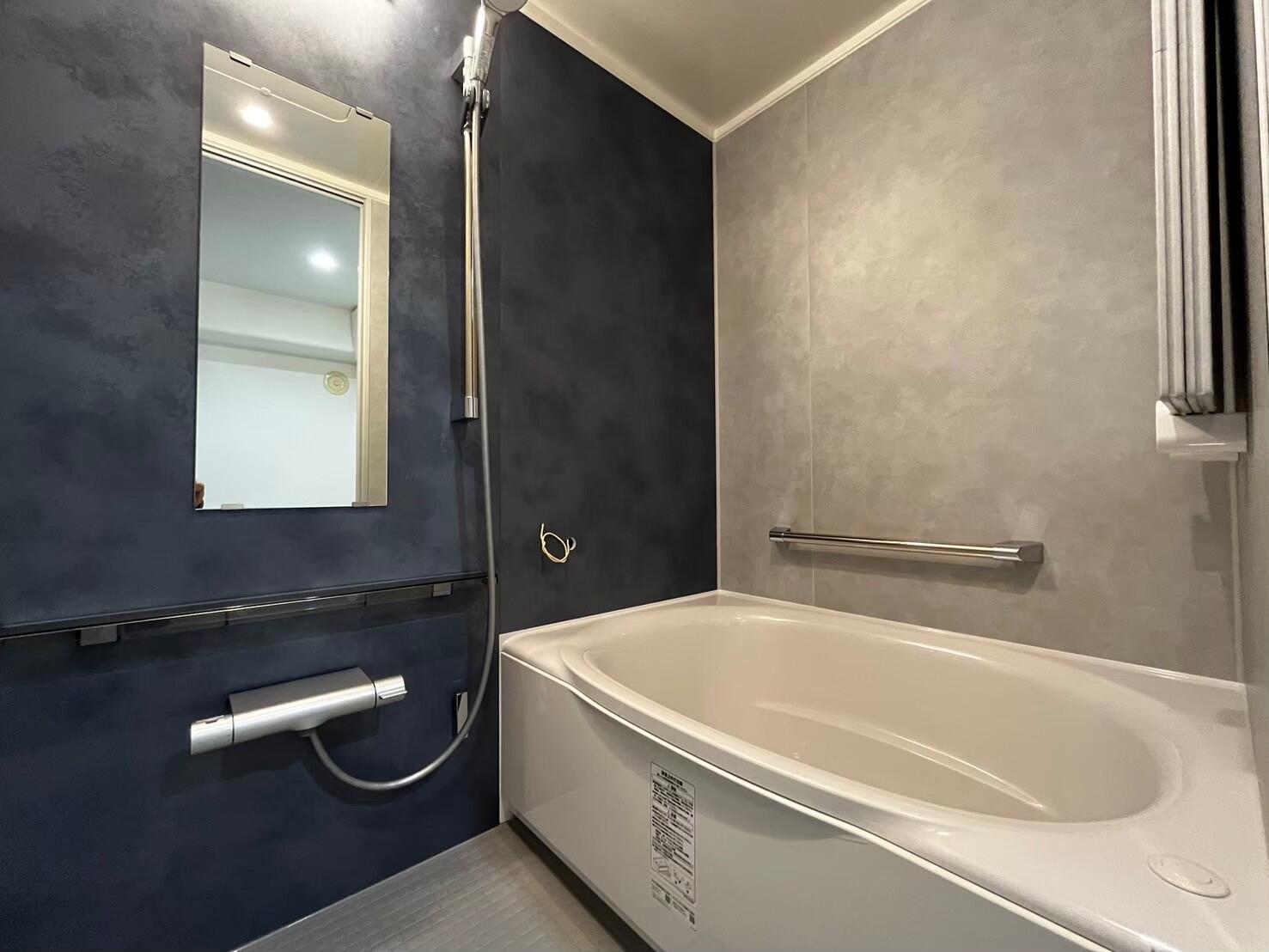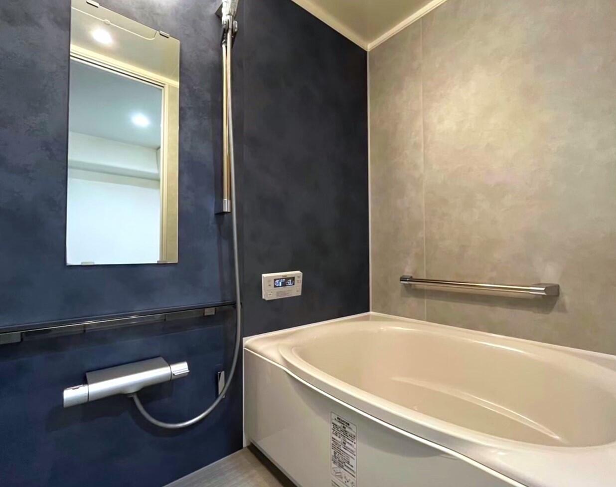 中古マンションご入居前の浴室リフォームを承りました。 角の少ないやわらかな曲線で快適に入浴できる「ミナモ浴槽」をはじめ、バスタイムを楽しく快適にする機能満載のLIXIL【リノビオV】です。 アクセントパネルはマットな質感の<ステインブルー>をお選び頂きました。 出入口の段差も解消して安心して入って頂けるようになりました。 落ち着いた空間で、ゆったりとした癒しの時間をお過ごし頂ければと思います。 浴室リフォームはぜひモンテホームへご相談下さい。