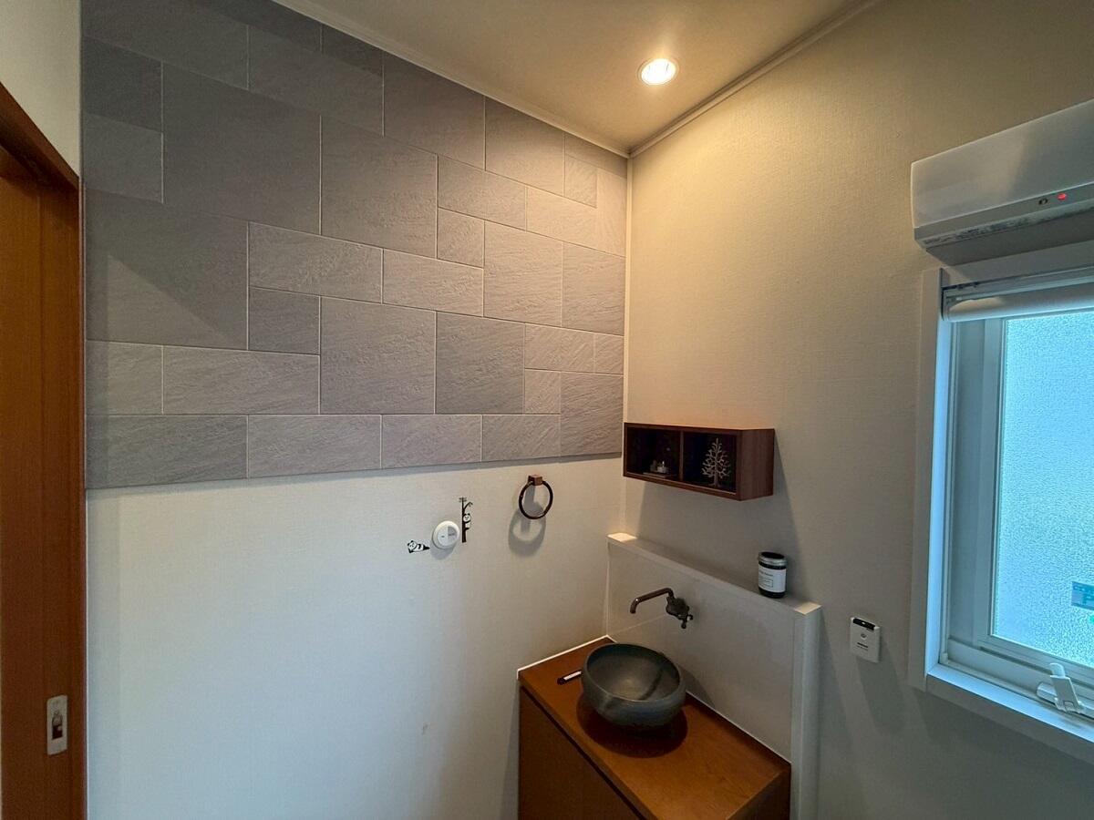 LIXIL【エコカラット】を施工させて頂きました。 豊富なデザインのバリエーションの中から、リビングには定番シリーズの「ファインベース」 を選ばれました。ホワイトのカラーが清潔でさわやかな印象で空間を広く見せます。 トイレには、「ストーンⅡ」 のグレーを採用されました。自然な石積みの意匠で空間を上質に演出します。 エコカラットは室内の湿度調整や脱臭機能などをもつ室内用タイルです。 湿気は通して水や汚れは通しにくい特殊なセラミック素材を採用し、室内空間を快適に保つ効果があります。焼き物の技術や土壁素材をヒントに開発されており、湿気の多い日本の気候と相性がよい建材です。 美しい空気で健やかにお過ごし頂ければ幸いです。
