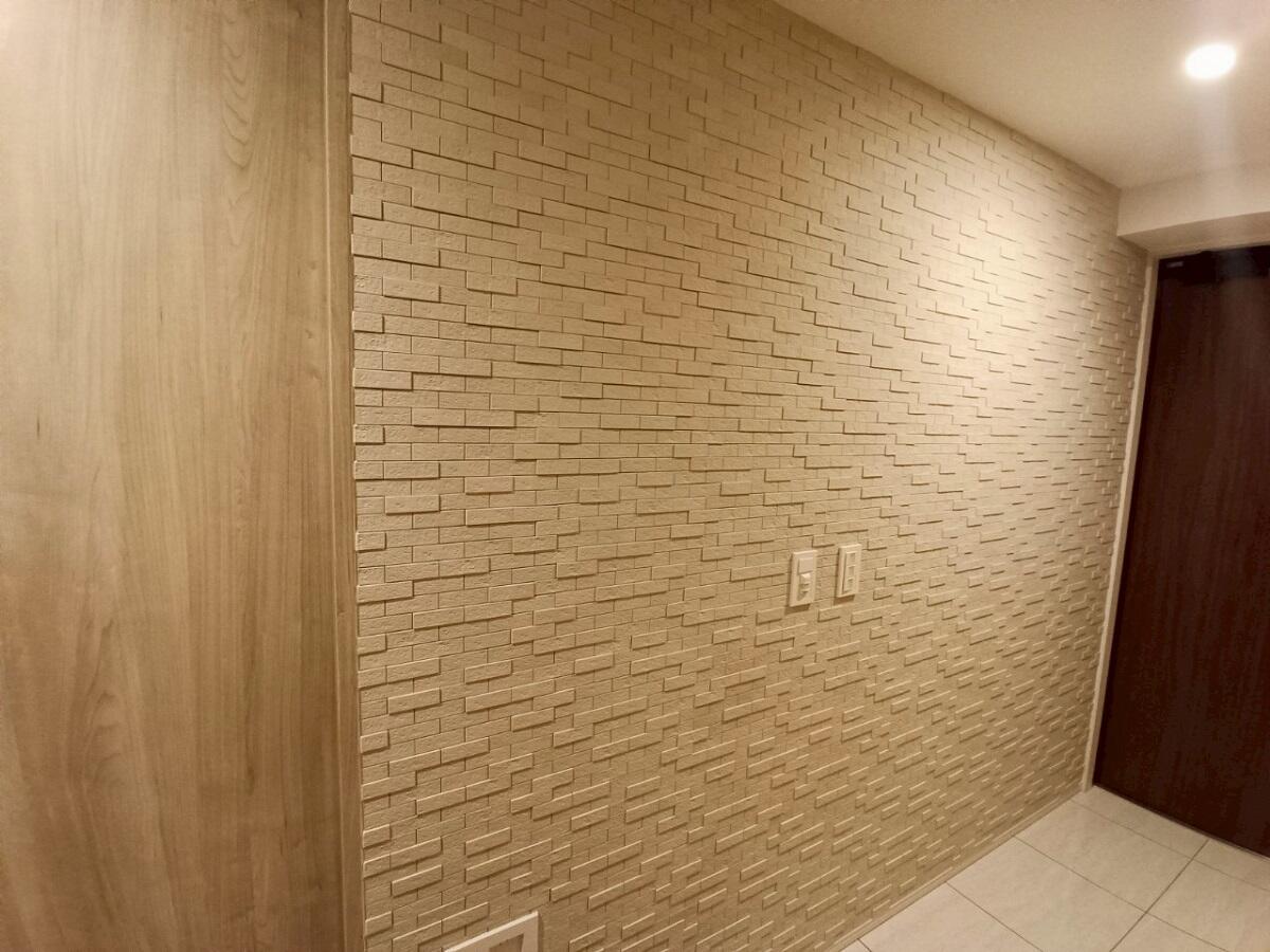 ご入居前の新築マンションにLIXIL【エコカラット】を施工させて頂きました。 玄関には、土もの調の素材感を表現した〈ランド〉を採用されました。 カラーは優しい風合いのアイボリーです。 リビングには〈ヴィストNX〉のクリームをお選び頂きました。 ライムストーンの繊細な柄と陰影感のあるレリーフの組み合わせでナチュラルな空間を演出します。 エコカラットはデザイン、色調、質感など豊富なバリエーションの中からお選び頂けます。 見た目の美しさだけでなく調湿・脱臭効果に優れており、また有害物質を吸着し軽減してくれます。 新生活を美しい空気でお過ごし頂ければ幸いです。 この度はモンテホームをお選び頂きありがとうございました。