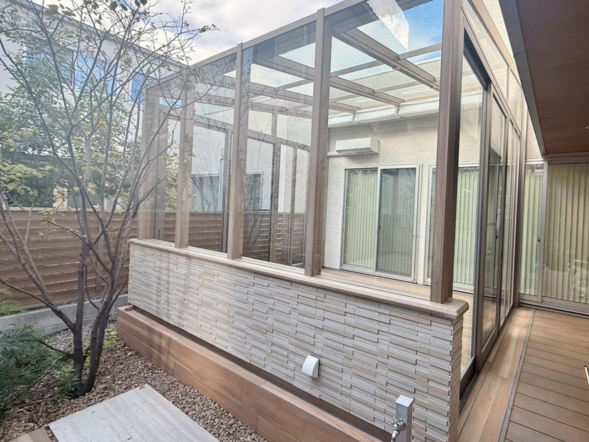 お庭にガーデンルームを新設致しました。 屋外の開放感と室内の快適さを両立したLIXIL【ココマ】はエクステリアでありながら、インテリア空間を愉しめるガーデンルームです。 読書やガーデニングなどの趣味を楽しんだり、ライフスタイルに合わせて使える多目的空間の誕生です。 第二のリビングとして、ご家族の時間がより豊かになる暮らしを実現できるリフォームとなりました。