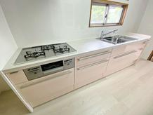 ピンク色のキッチンで明るい空間に!