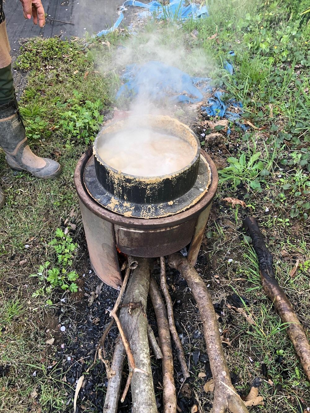皮を剥いてすぐ米ぬかで40分ほど湯がいたのですが、