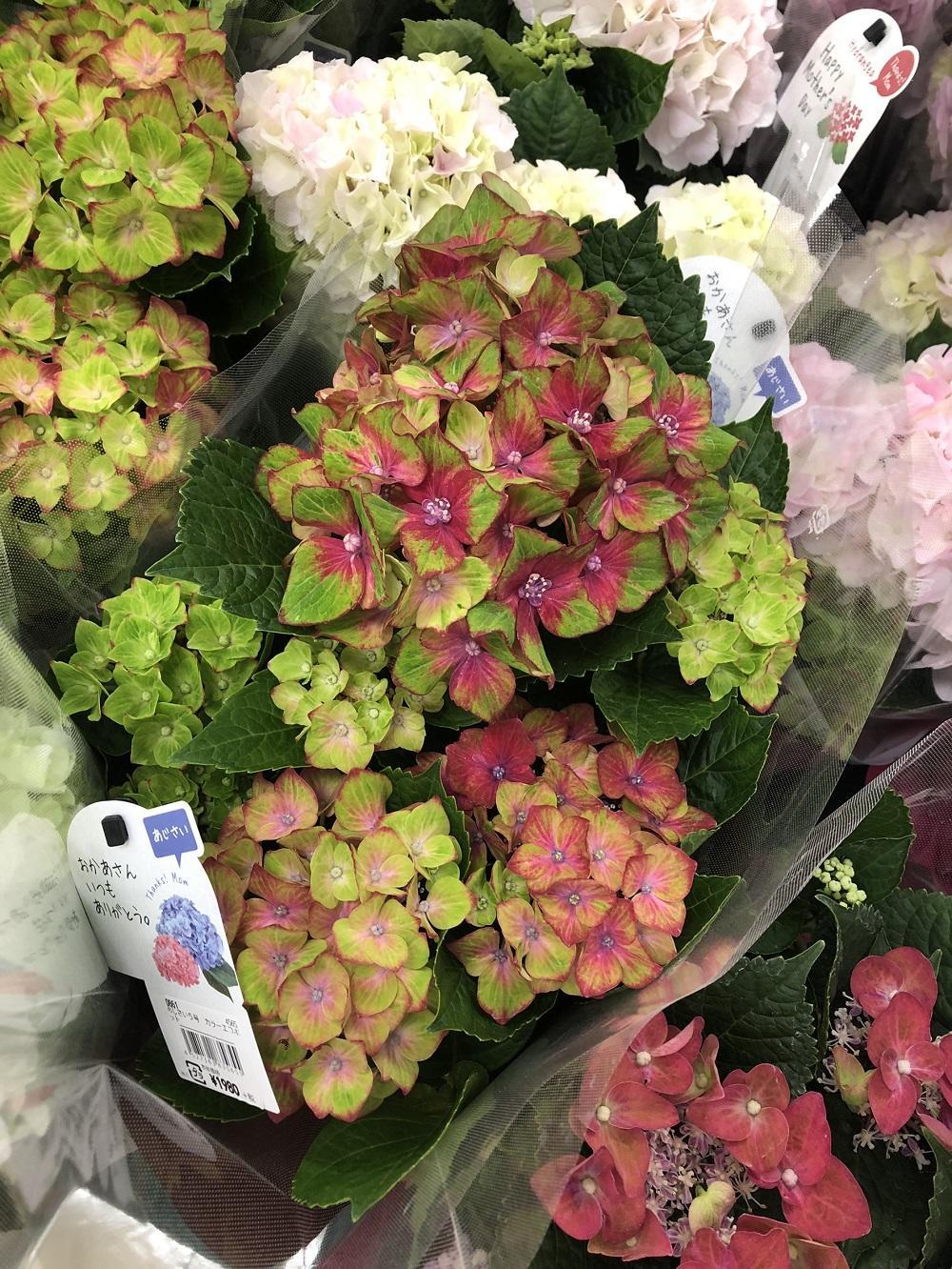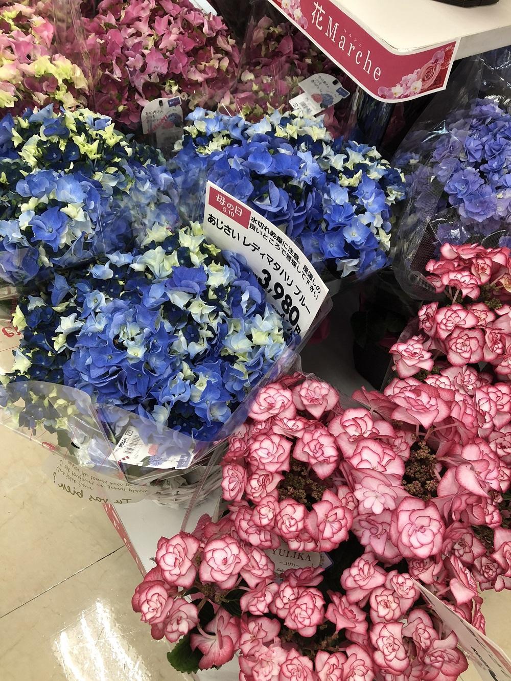イオンの母の日コーナーは、あじさいの存在感がすごかったのと種類の豊富さにびっくりしました(*'ω' *)!