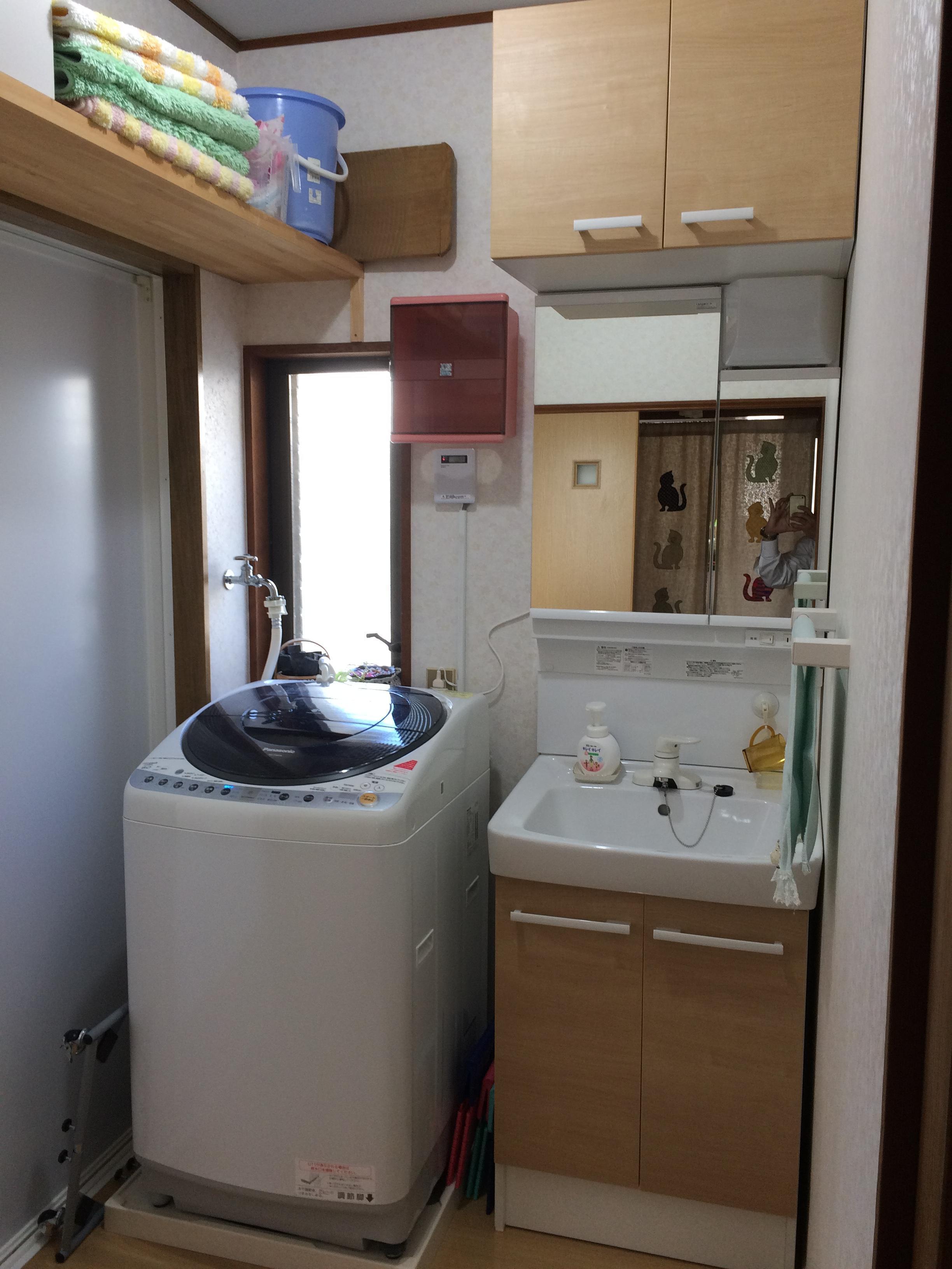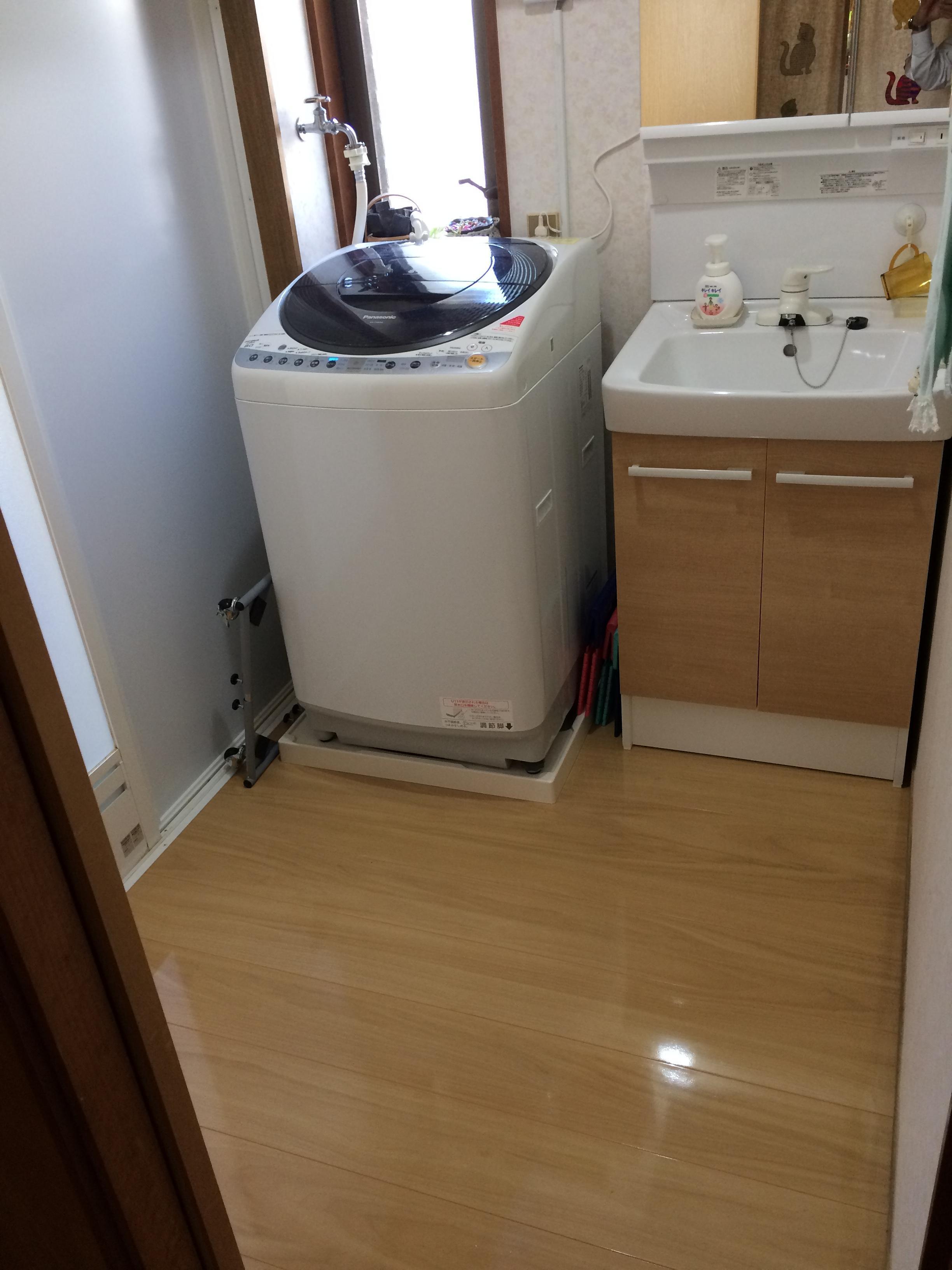 洗面所の床を張り替えたいとのご要望から結果的に化粧台と鏡まで取替させていただきました。床はお客様こだわりの桜を使い、見た目に高級感が出ました。床張り替え~化粧台取替まで一日でおわりましたヽ(^o^)丿