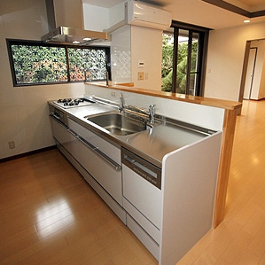 お客様の1番のご要望は、 お子さんが小さいので、対面キッチンにすることでした。 また、食器洗い乾燥機と清水器の設置や、家電収納が出来るようにと リビングを明るくしたいということでしたので 私どもは、キッチンの設置の関係で、 収納家具は引き戸タイプをおすすめし、 お客様のご要望で、扉のカラーとデザインもこだわり、 ピュアパールで明るいイメージをご提案しました。