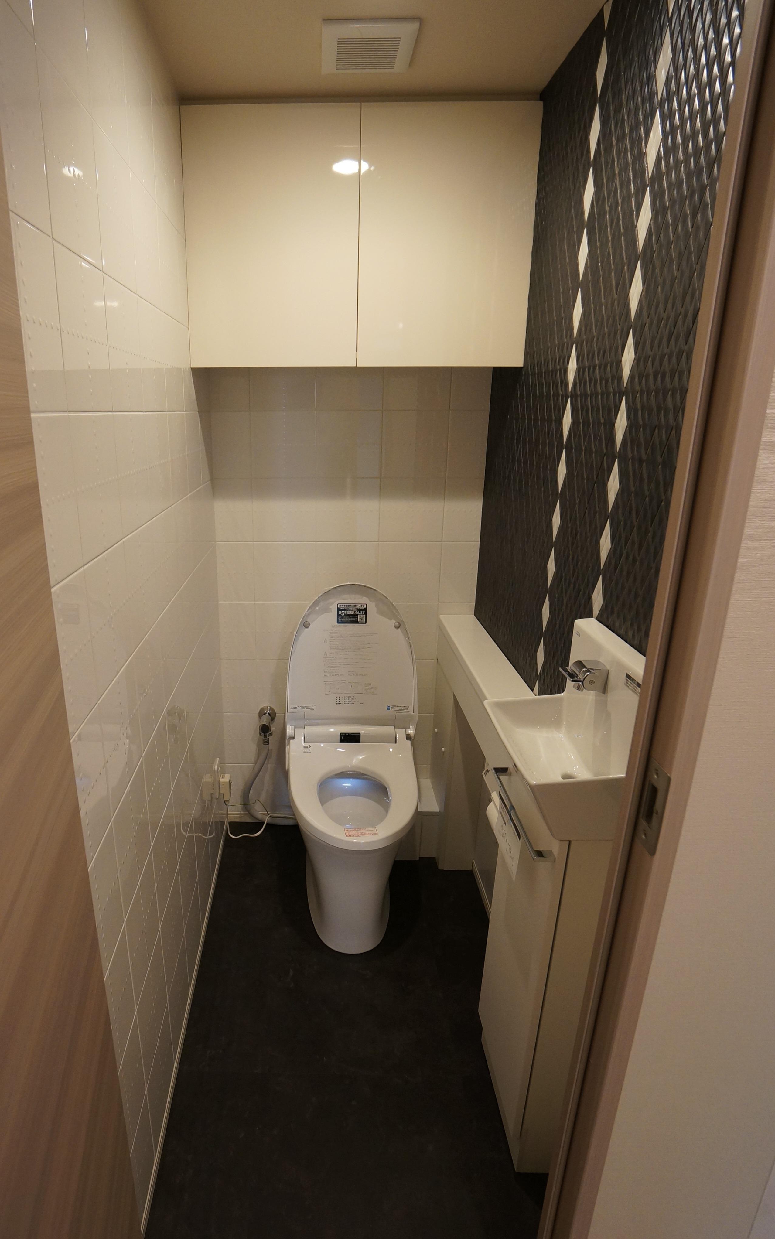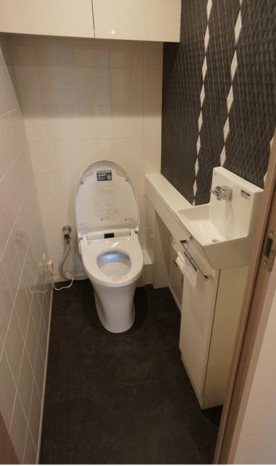 *トイレ* 壁紙取り付け 手洗いカウンター取り付け