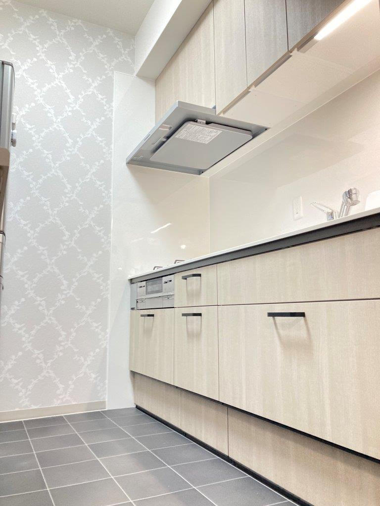 この度、弊社で施工していただきありがとうございます。 ノクト(扉カラー・ラスティックアッシュ、ワークトップ・ソルティホワイト)を選んでいただきました。 優しい印象のエレガントなクロスと硬質な素材感のフロアを組合せた奥様のセンスが素晴らしいです。 洗練されたおしゃれなキッチンになりました。