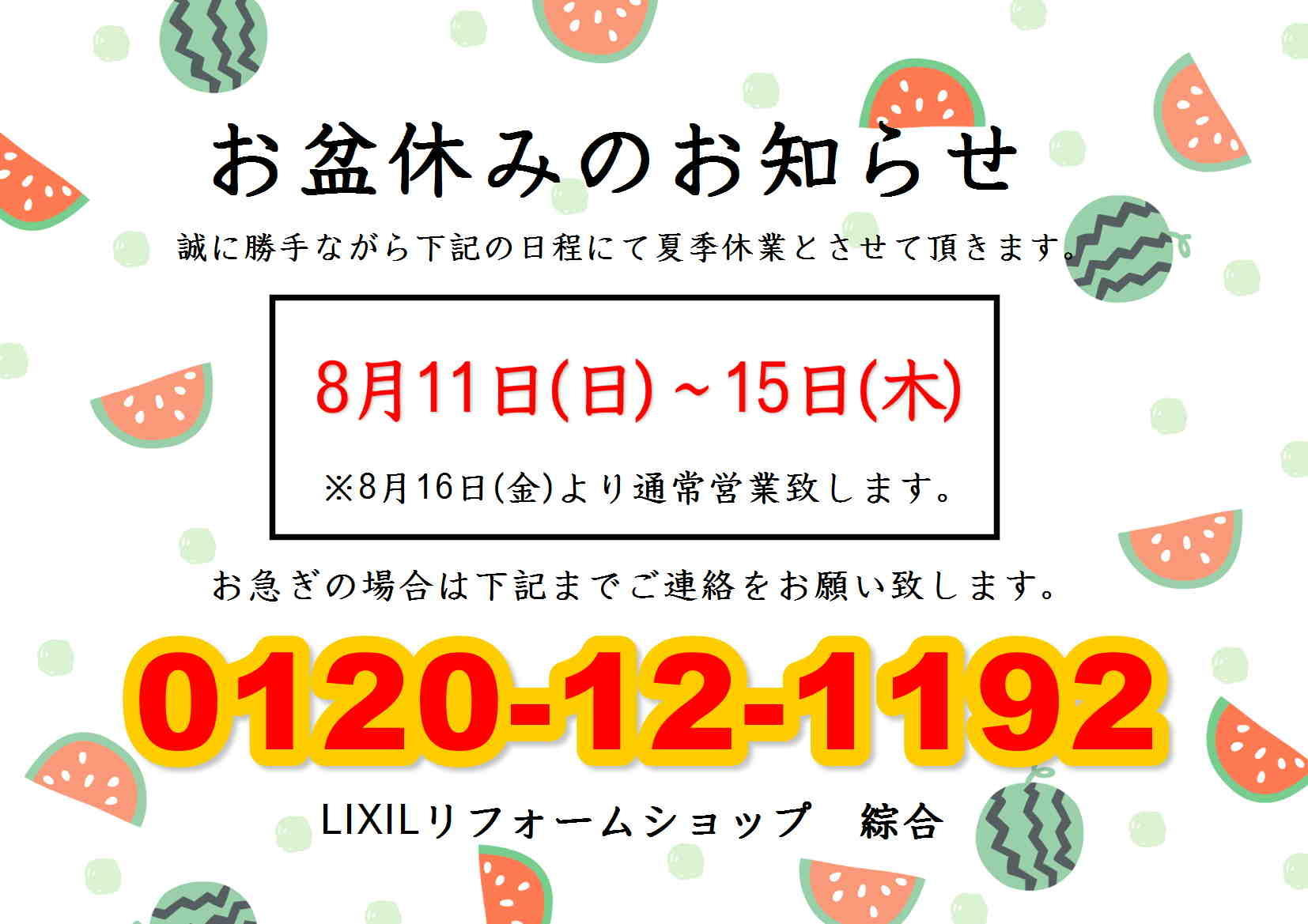 ≪ 夏 季 休 暇 の お 知 ら せ ≫