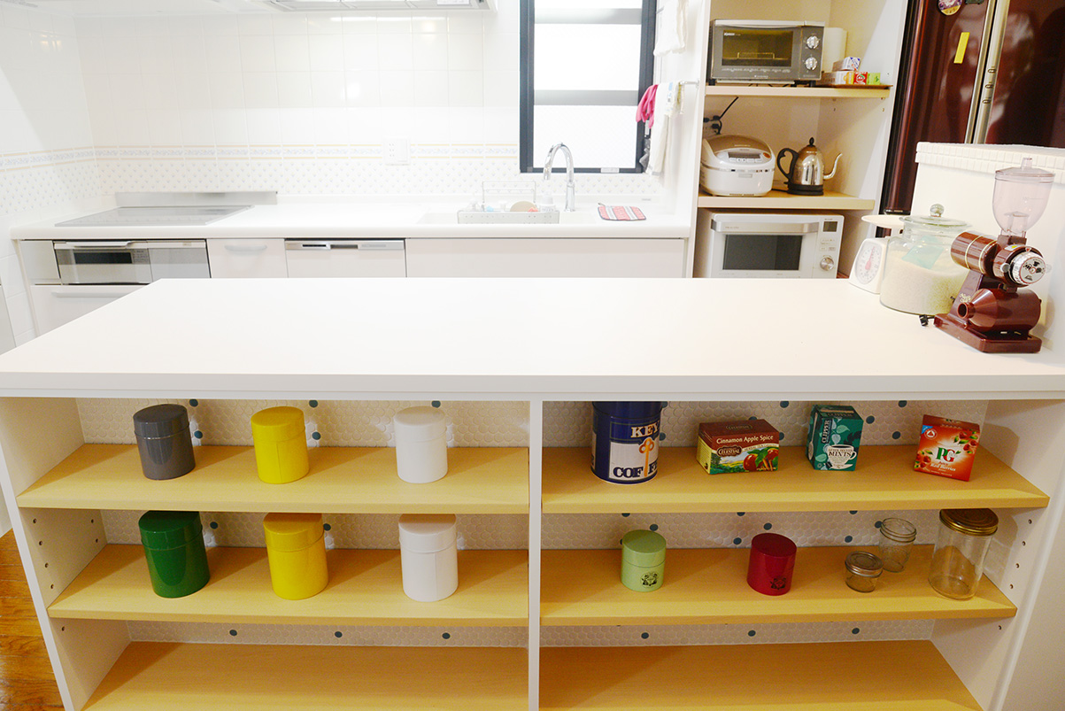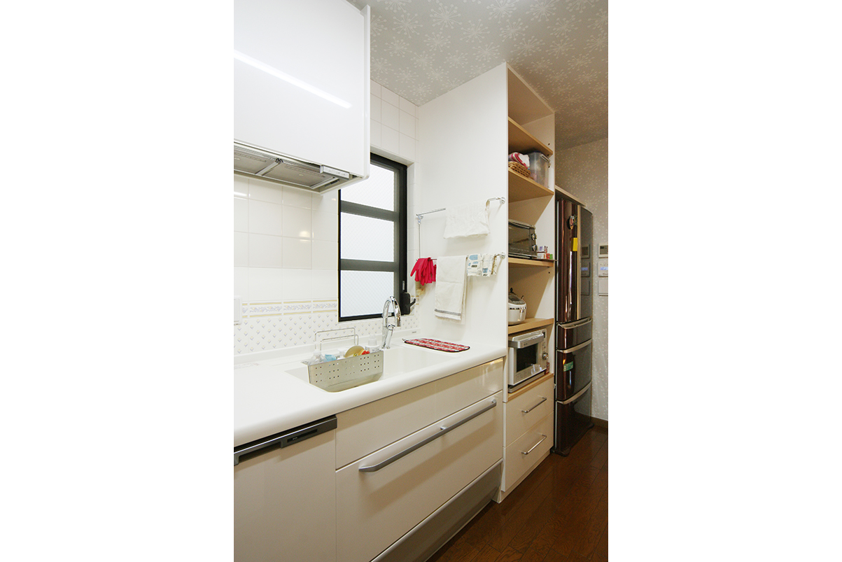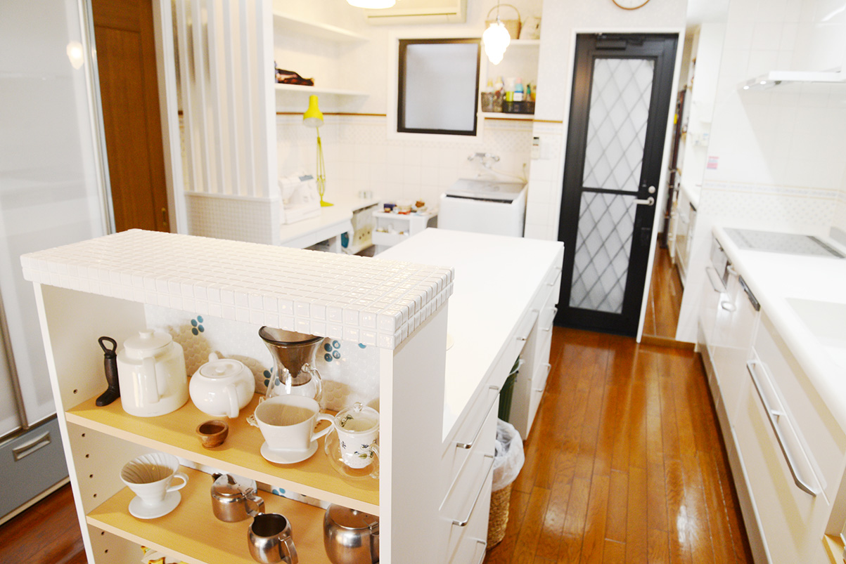 壁面はリフォーム前のタイルが奥様のお気に入りとのことで、今回はそのまま使用することにしました。