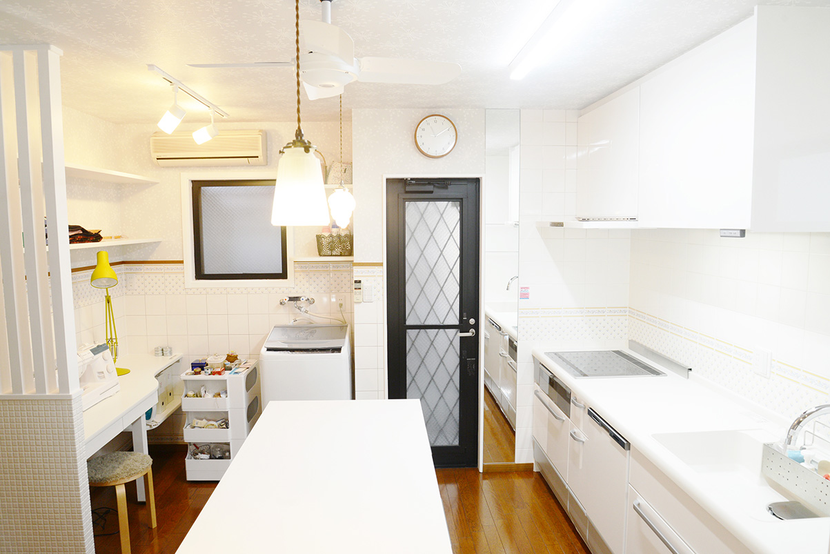 当初はリビングにあった裁縫コーナーですが、広いキッチンに1コーナーとして設置することになりました。