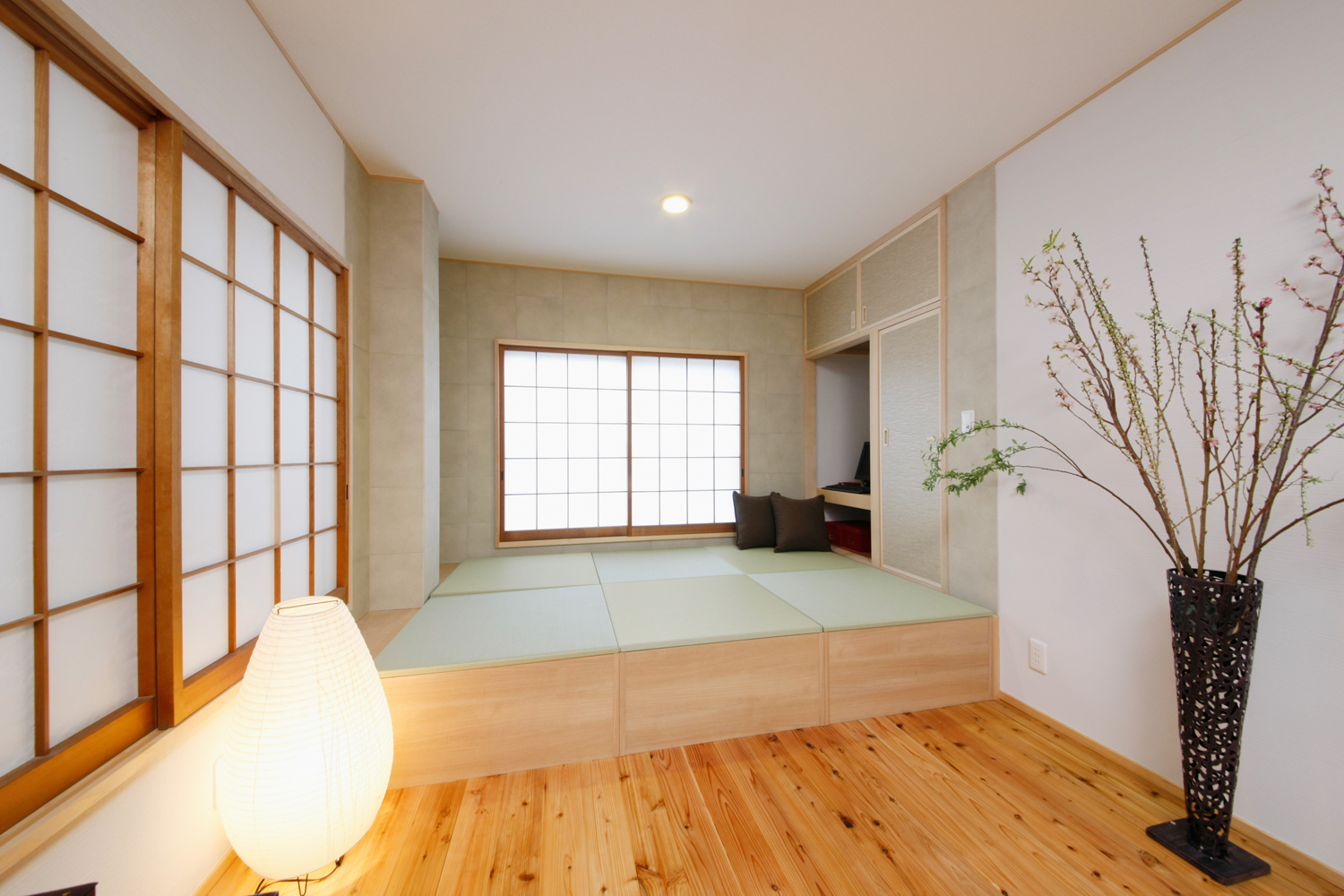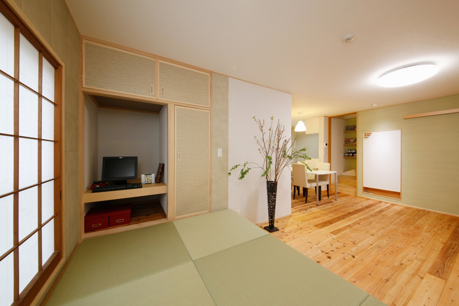 お父様のために腰掛や収納にもなる畳タイプの収納スペースを「和コーナー」として設置しました。
