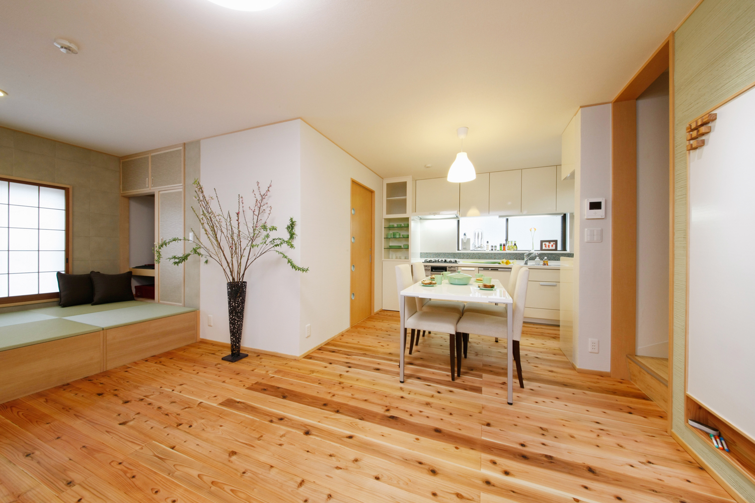 この度、全面リフォーム工事にて、お世話になりました。 ありがとうございました。 完了から1ヶ月程過ぎ、生活していますが、おかげ様で、とても快適な暮らしをさせて頂けております。 水工房さんとの出会いは、リフォームを考え出した1年半ほど前の新聞の折り込み広告でした。見学会へは行かれませんでしたが、こんなリフォームがいいなぁ・・・と思い、ずっと手元にありました。 いざ、依頼しよう!と思った時に、まず連絡させて頂きました。 ご丁寧な対応をして頂き、とても好感をもち、工事をお願いしました。 息子の入学を機に、親との同居、新しい環境、さまざまな不安な事や課題もありましたが、ご相談にのって頂き、お話を重ねていくうちに、少しずつ形にしていく事が出来ました。 できる範囲で、自然素材も使いたかったので、その中で杉の床材をお願いしました。素足でもヒヤッとすることなく気持ち良く、子供が特に喜んでいるので、本当だと思います。 少々キズがついても、水をぬらした布を置いておけば復活してしまうので、小さい子が居る家だからこそオススメです! 工事中は、スタッフの方々皆さん良い方ばかりで、とても気持ちよかったです。そして楽しかったです! 子供と共にタイル貼りや、床のワックスぬりをさせて頂き、楽しく、とてもよい思い出ができました。 些細な事でも相談や提案て頂き、考えて頂き、大変身した我が家に家族みんな満足です! 今後も末永くおつき合い、よろしくお願いいたます。