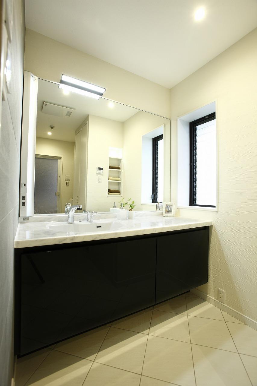 洗面ルミシス ★ 既存L型からワイドなI型洗面にすることでゆったりとした空間になりました。