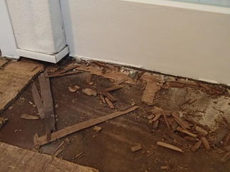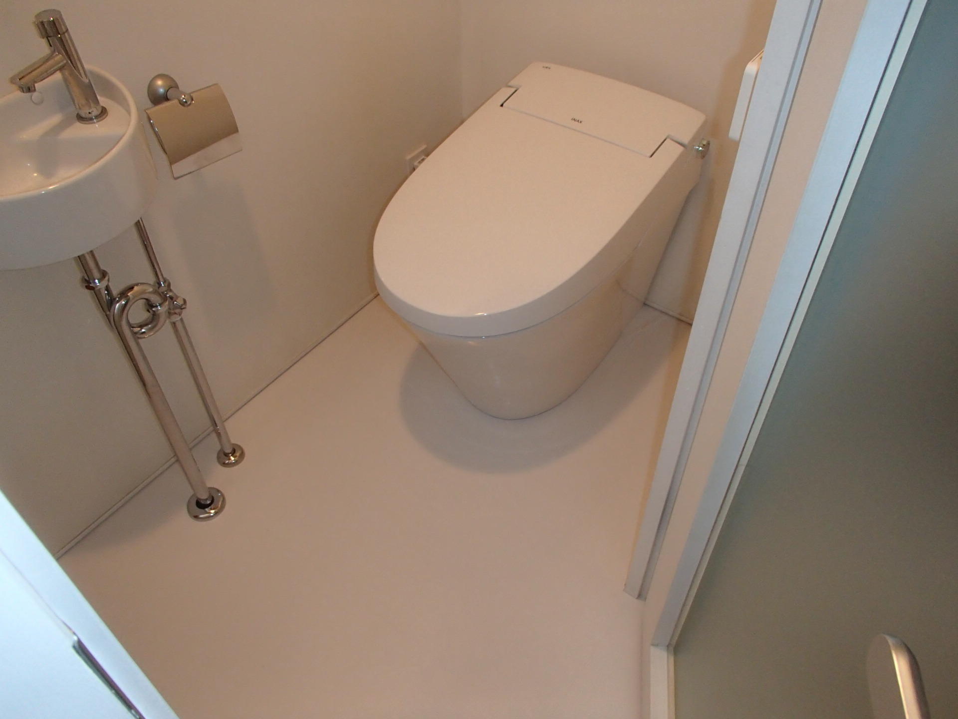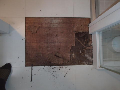築約20年、トイレの交換工事、洗面脱衣室床下地腐朽のため下地のやり替え及び床タイルの貼り付け工事。