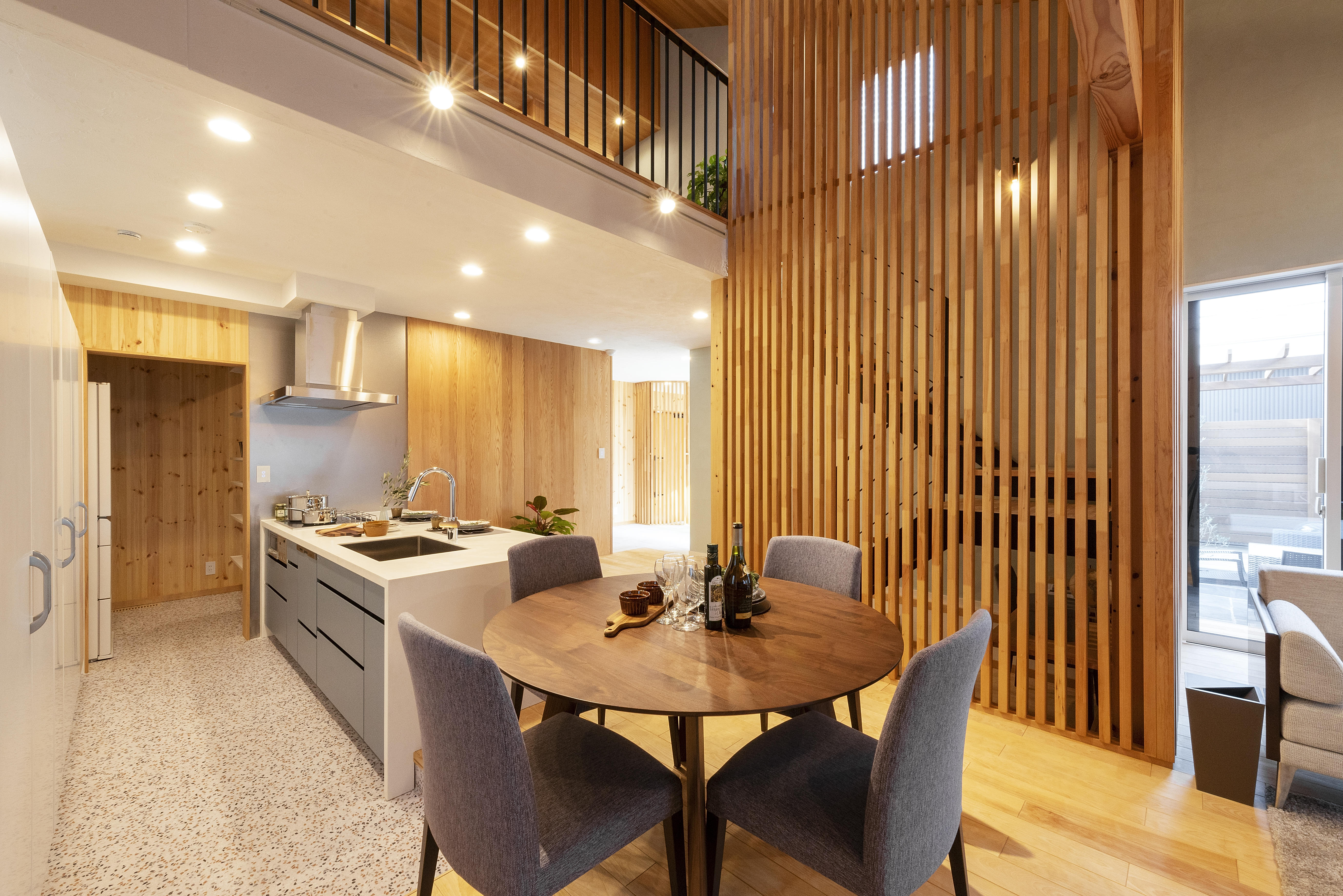 ダイニングはキッチンを横並びにして家事動線を短縮。