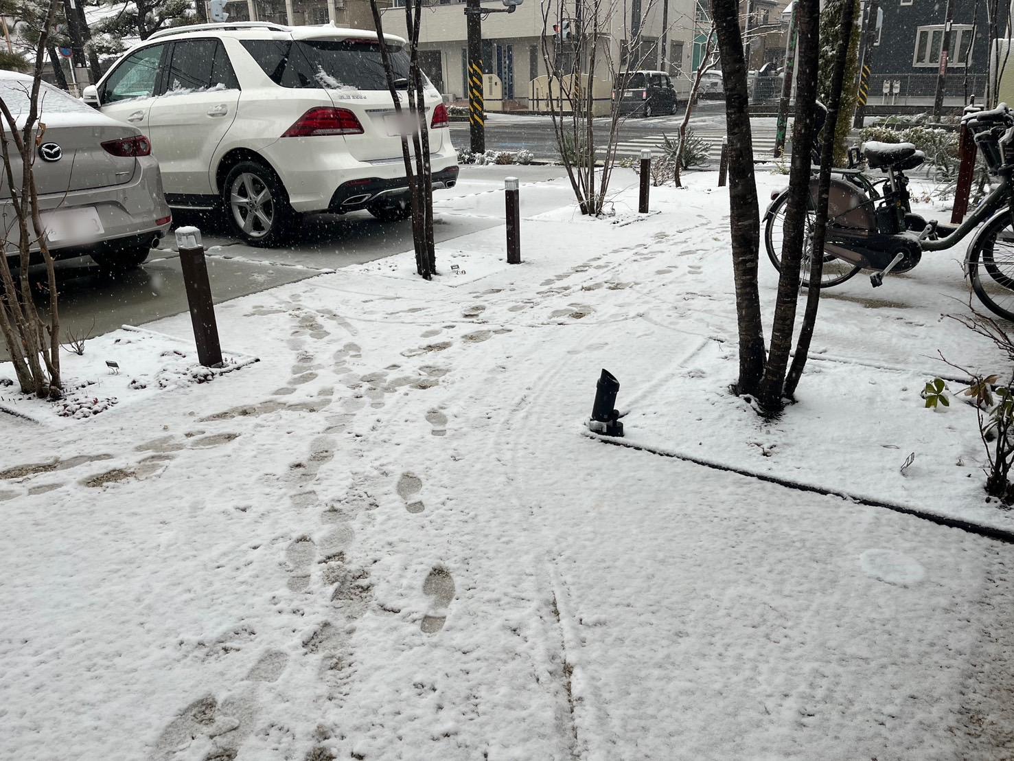 予報通りお昼から矢部エリアでも雪が降り始め、積もってきました❄
