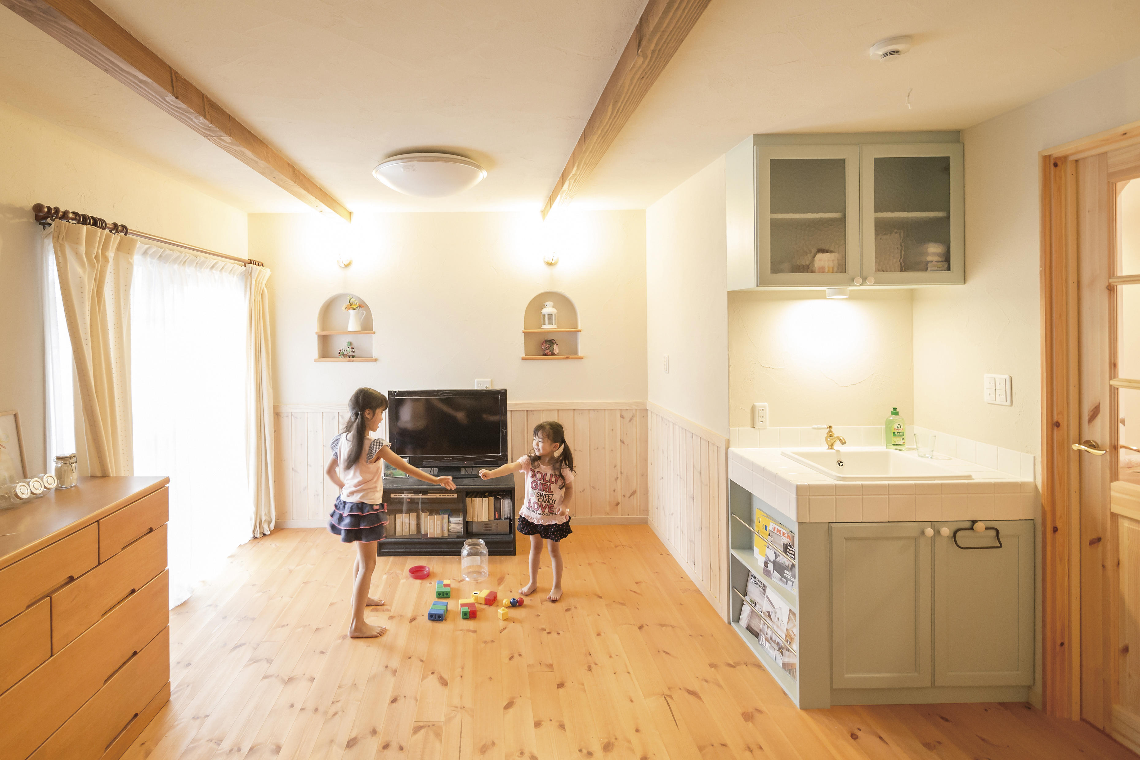 内部の仕上げには自然素材を使った快適空間を提案し、お子様が大きくなった時の部屋割りまで考慮したプランとなりました。