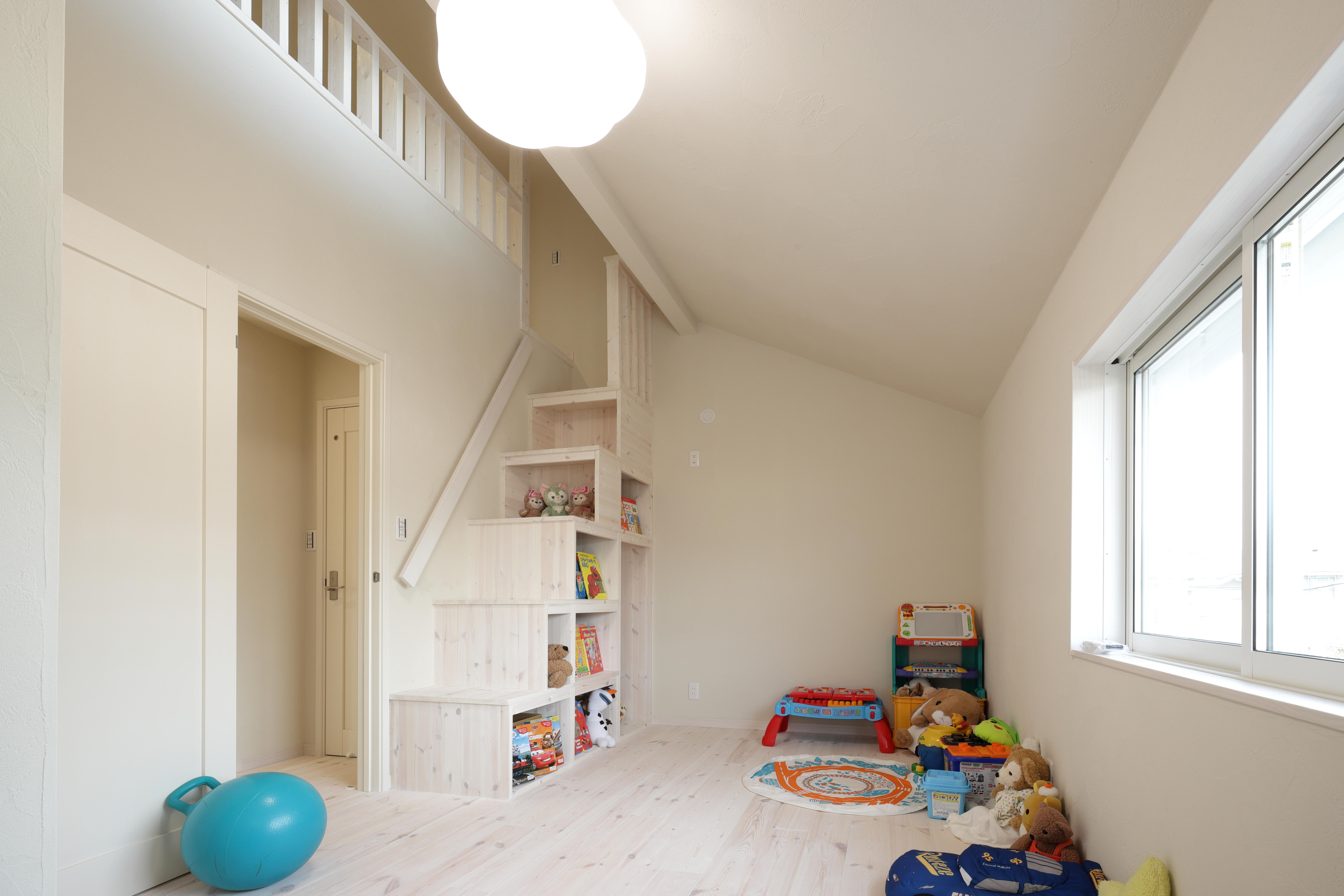 もともとはロフトはしごでしたが、子供たちが遊べるよう&収納力UPのため、収納付きロフト階段に。