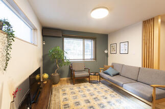 外壁、内装を新築のように仕上げてもらいたい、という希望が叶いました。私たちの漠然としたイメージをしっかりと提案に落とし込んでくれ、家具やランプなどを入れた最初のパースは仕上がりをイメージしやすかったです。施工中も問題が生じたときにスピーディーに対応いただき、不安なく進めることができました。細かい打合せを重ねた甲斐あって、住み心地は最高です!