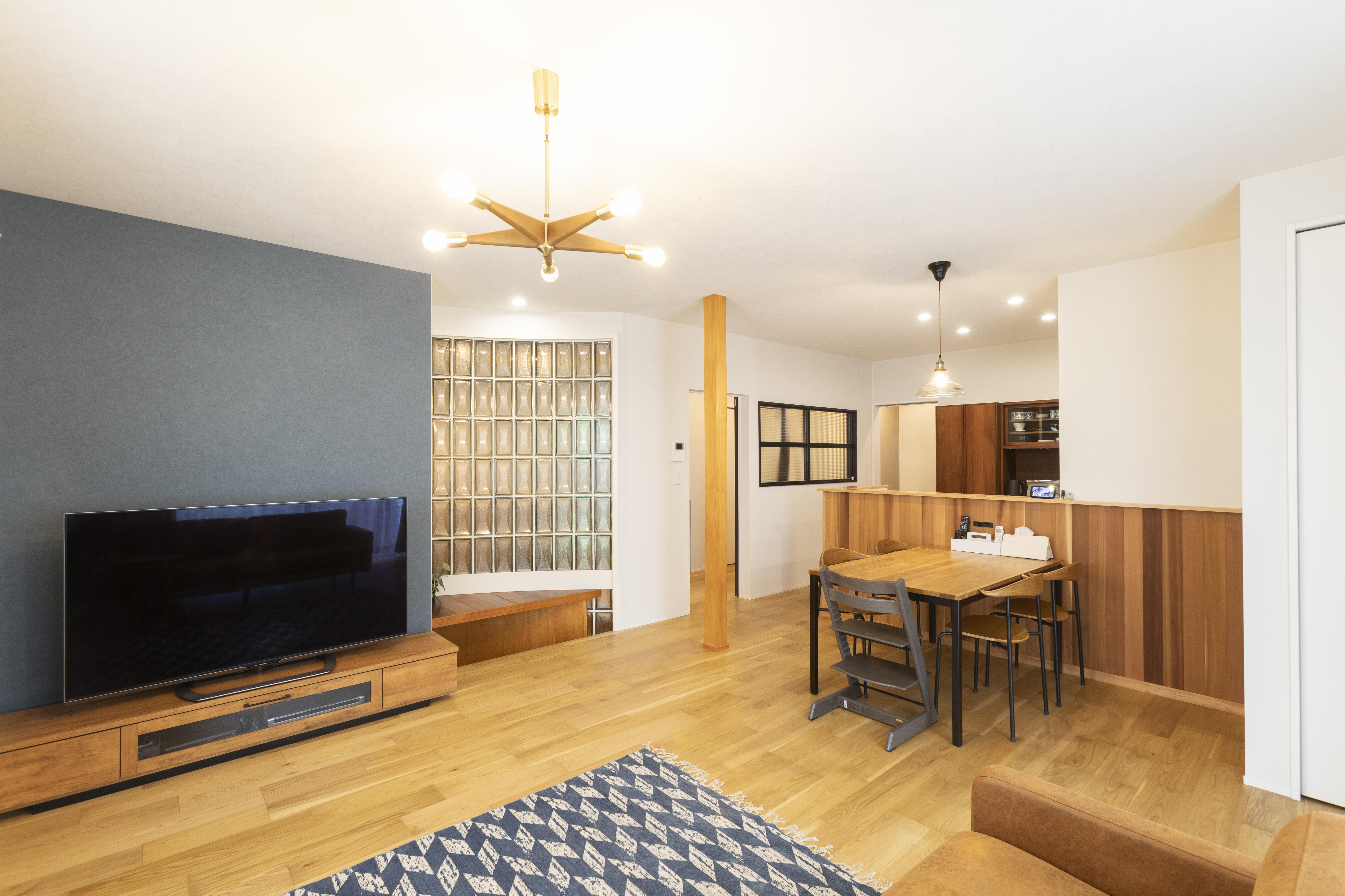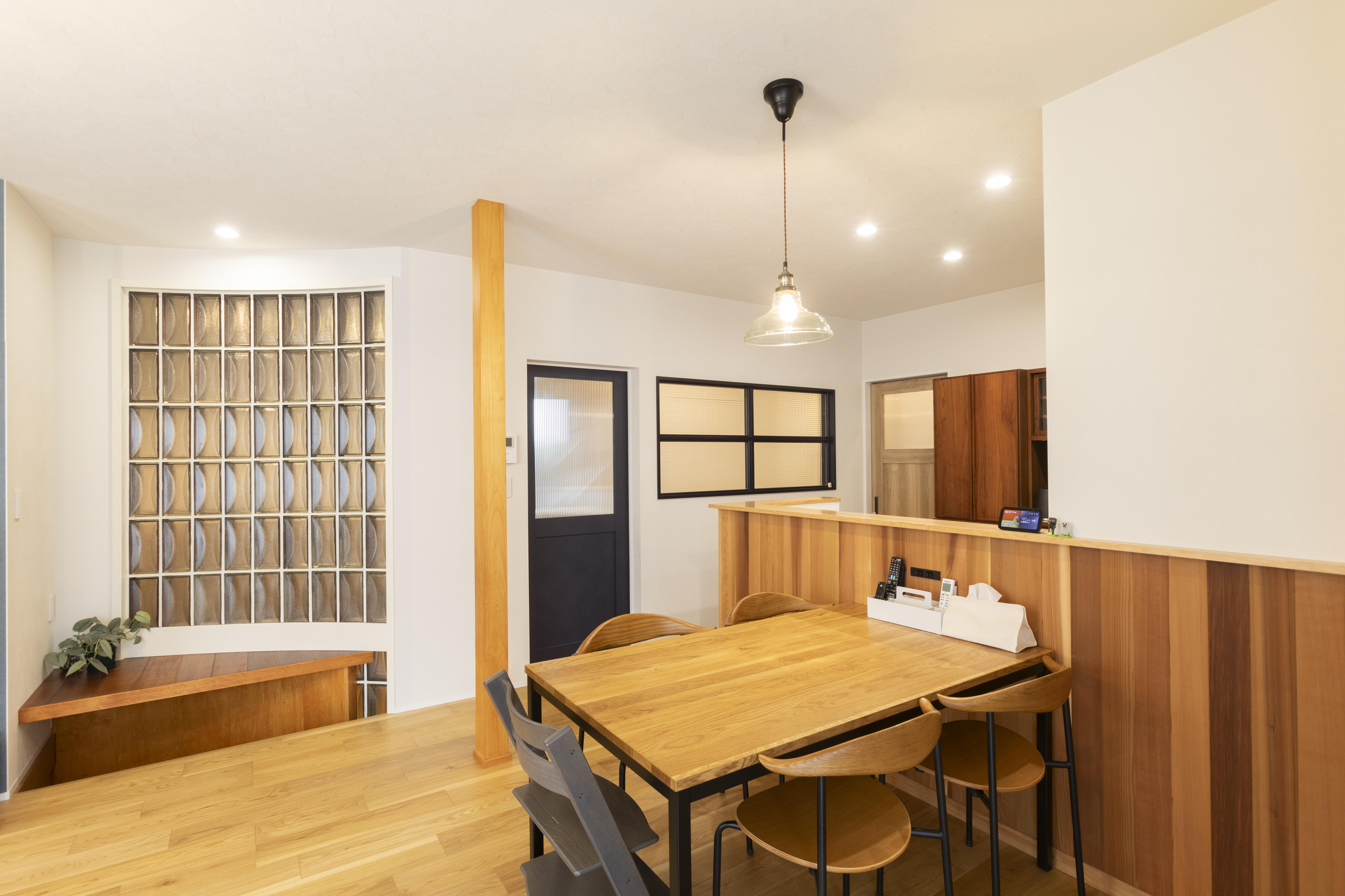 現地を拝見した際、建物の構造がとても良好だったため、既存の魅力を活かすリノベーションをご提案しました。 ガラスブロックやドアといった、これまでの暮らしの記憶が残る素材をうまく取り入れながら、新しい家族の時間が育まれる住まいへ。 完成後、元気に走り回るお子さまの姿がとても印象的で、この住まいがこれからのご家族の楽しい日常を支えていくことを、心からうれしく思います。