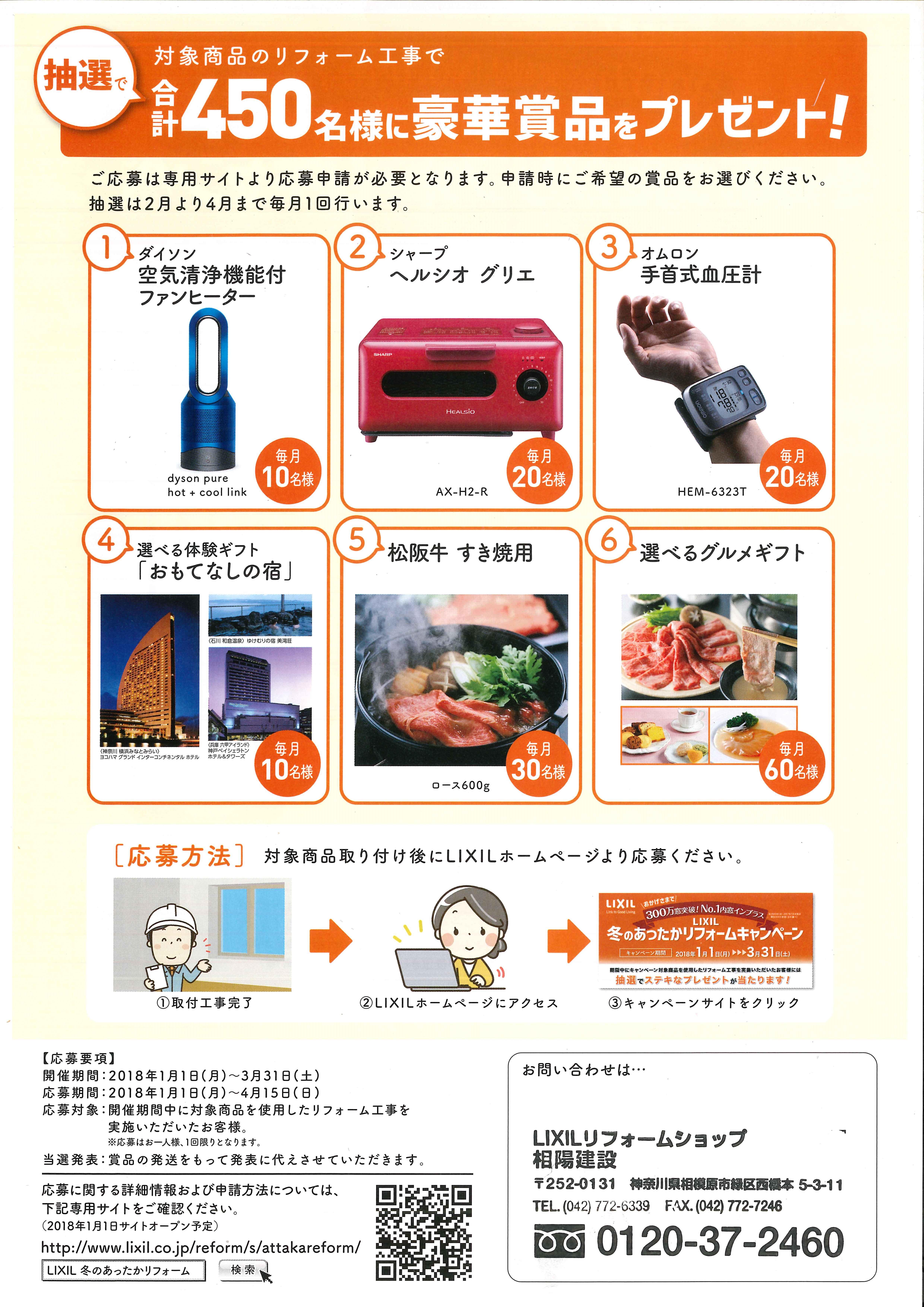 「窓・ドアのリフォームで当たる!」キャンペーンのお知らせです!