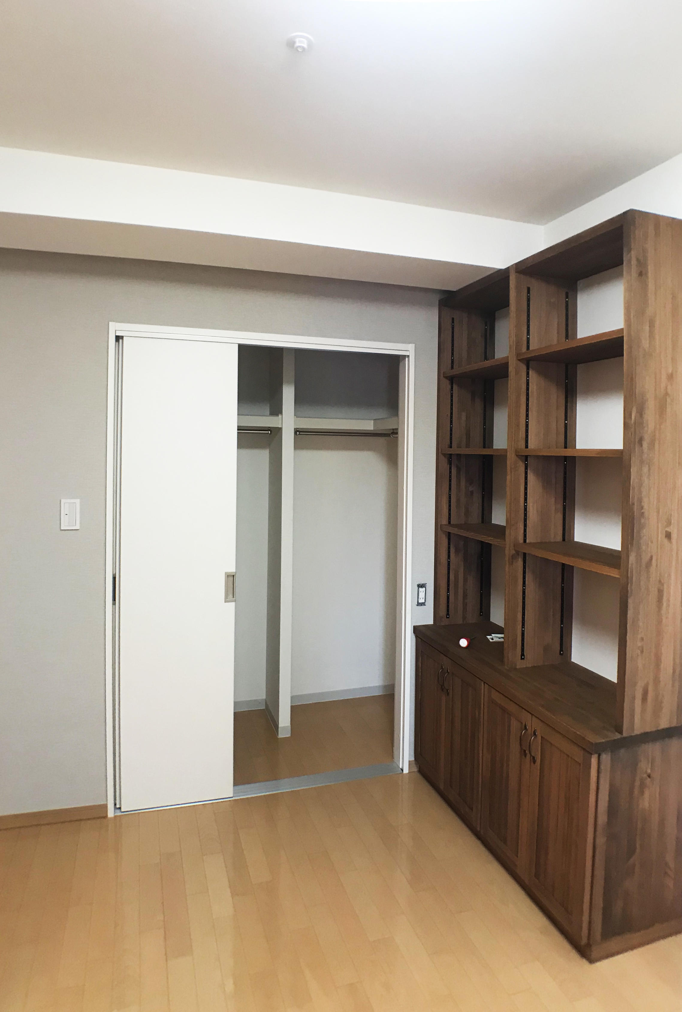 ご主人の本棚を造作しました。 使いにくかったWICの扉も3枚引き違いに取り替えて使いやすくなりました。