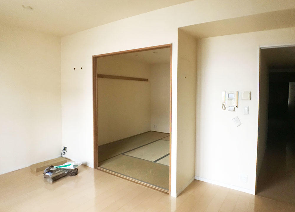 中古マンション購入を機に改装依頼がありました。 和室部分を洋室にし かつリビングとの一体感を要望されました。