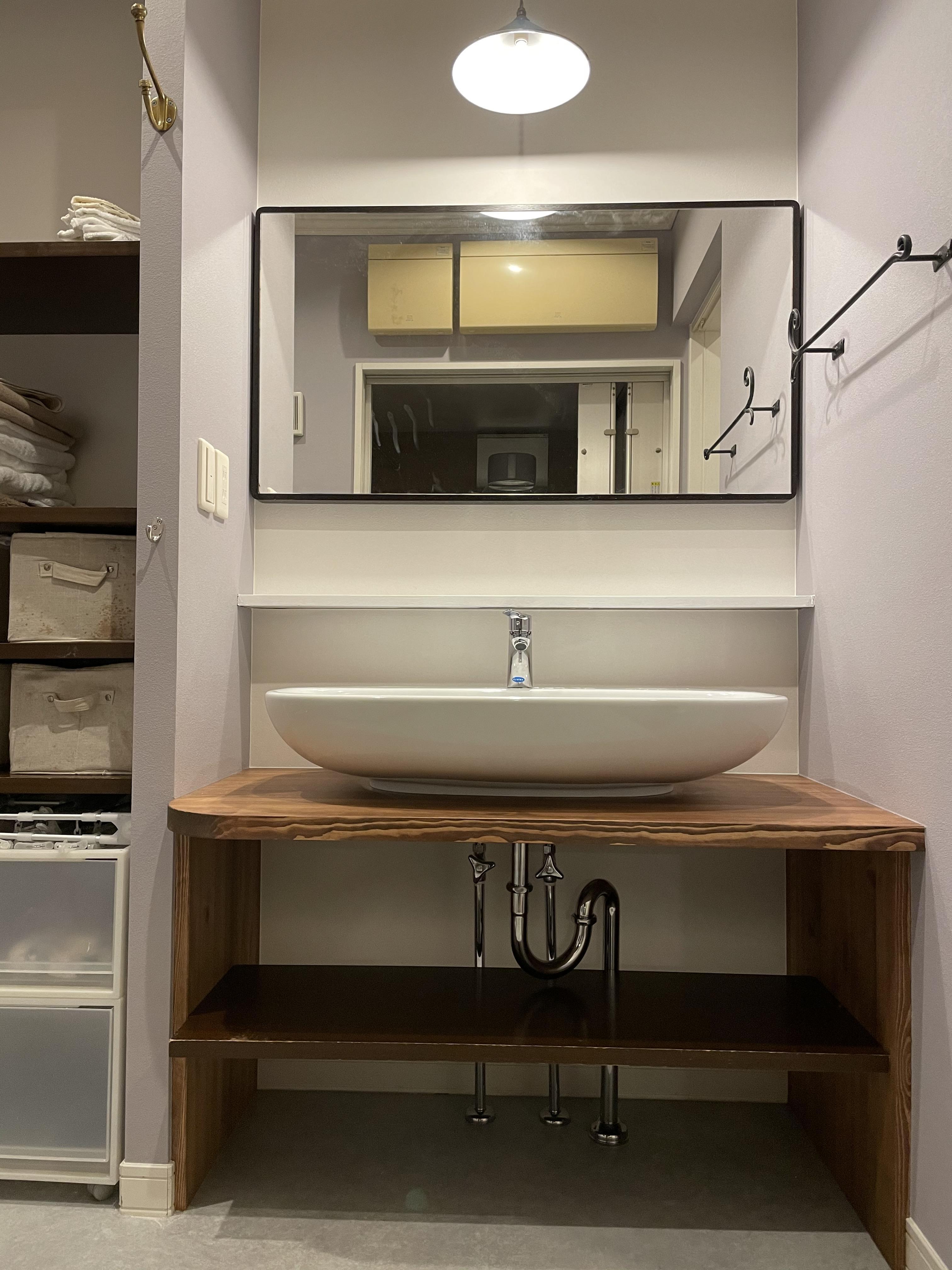 もともとこだわった造作の洗面カウンターでしたが モザイクタイルのカウンターの汚れが落ちにくくなり 弊社の展示カウンターを気に入られ採用。 大きめな洗面器ですが ピッタリはまりました。 家族全員大満足と聞いています。