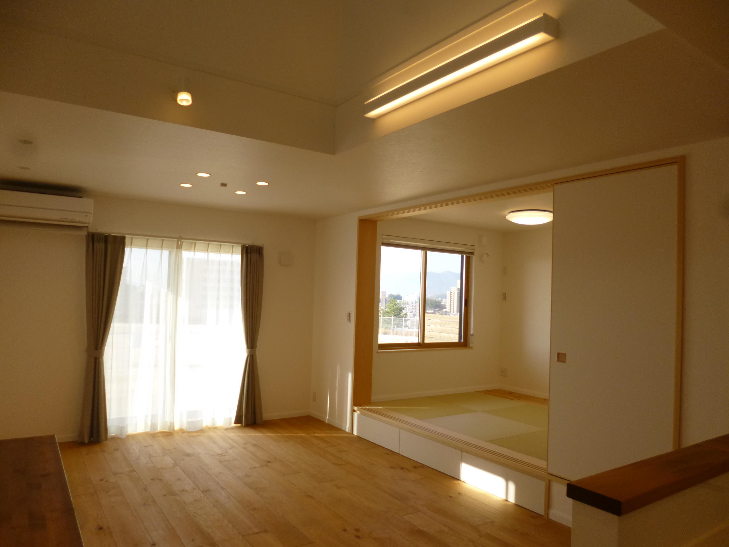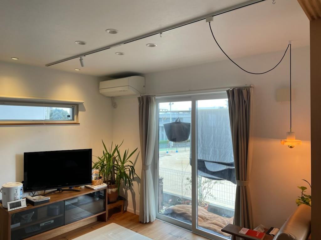 配線ダクトを追加し 落ち着いた空間になるようにペンダント・スポットライトを設置しました。 暮らしに もう1シーン追加できました。