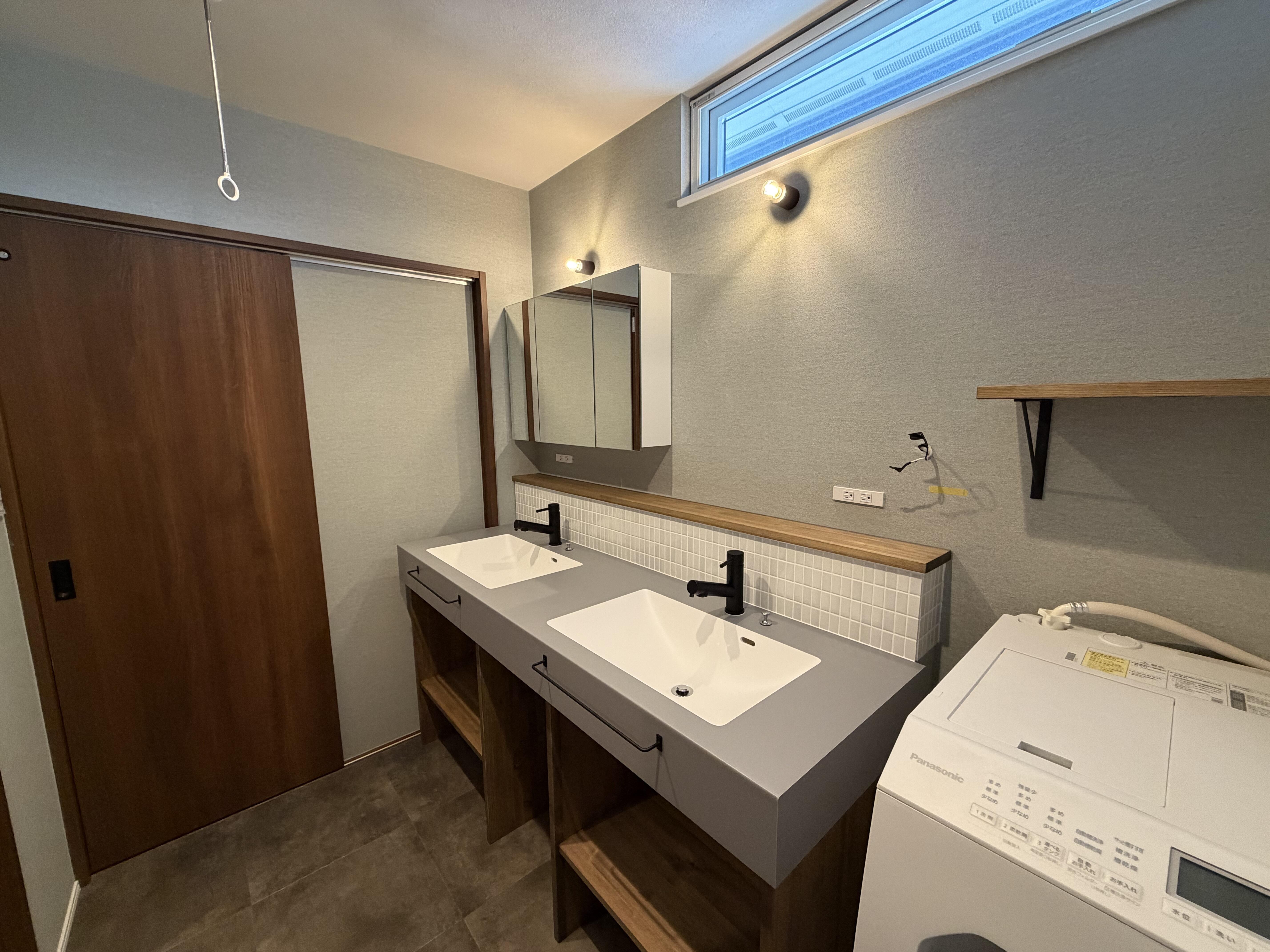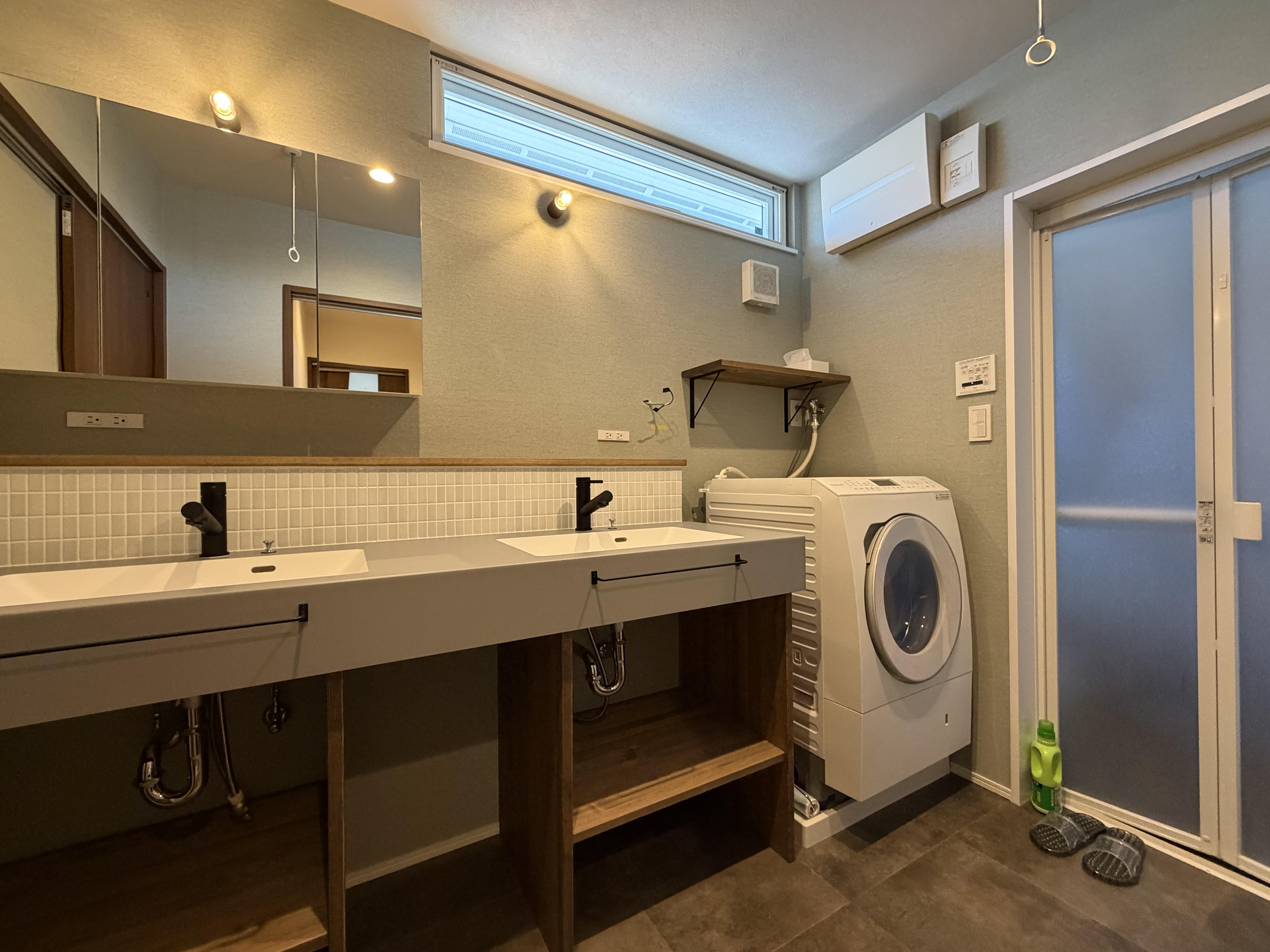 子供さんも大きくなり 洗面カウンターを2ボウルに取替しました。 朝の忙しい時、込み合う時もすこしはスムーズになるはずです。