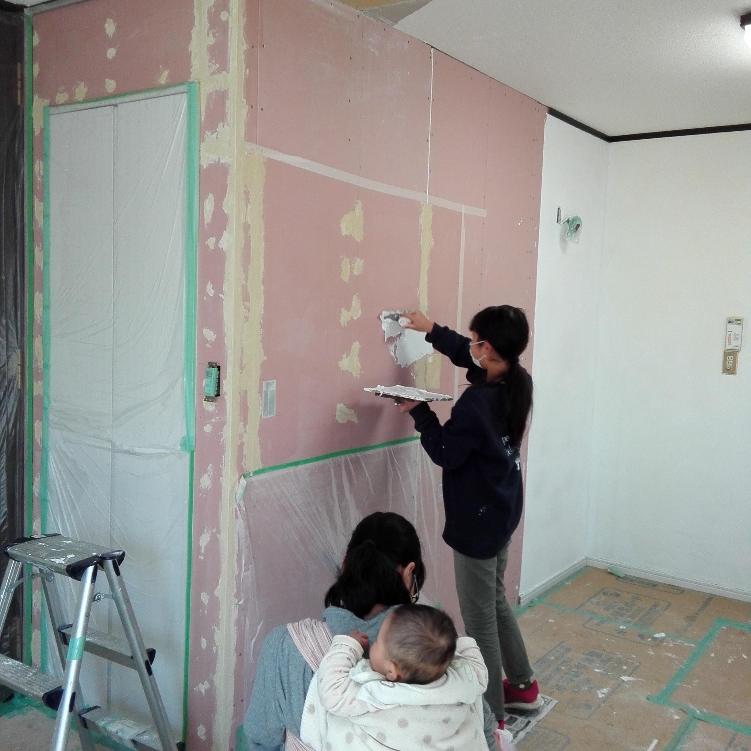 Y様邸は、旧ナショナル住宅のプレハブ住宅で、壁を取れるか解体をするまで不安がありましたが、お部屋の中は木造で仕切られていたので、すっきりした広々とした空間になってよかったです。 お客様と一緒に漆喰壁を塗らせていただいたのは、とても楽しく作る楽しさや難しさを味わっていただけたかと思います。 これからもお客様とともに、家を作らせていただくお手伝いをさせていただけたらと思います。