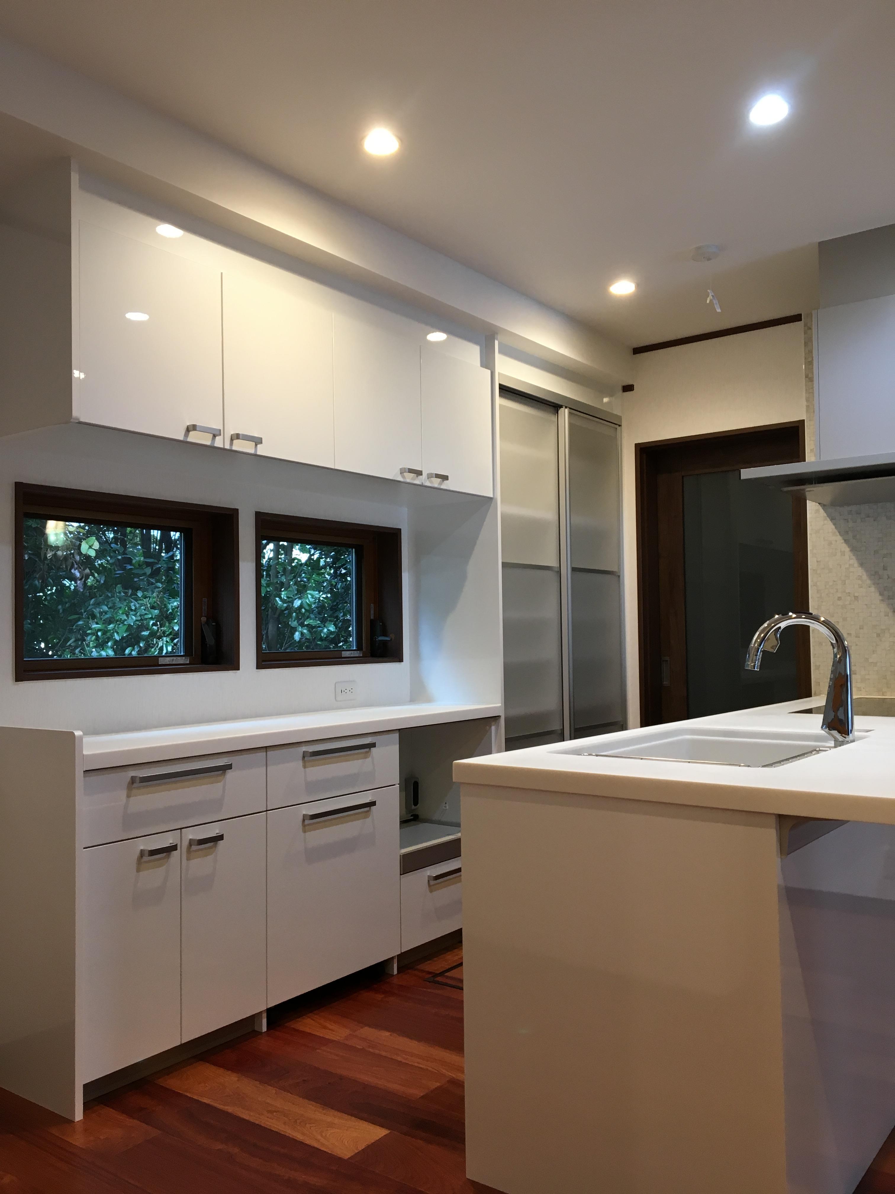 リビングに光が少なかったお家から、家族団らんが楽しめる明かるいお家へリノベーションしました。リビングに光がさしこみ、憧れの広い大きな対面キッチンで家族団らんの楽しめるお家になりました。家族のプライベート空間も明るくリフォーム。お父さんには憧れの書斎を!