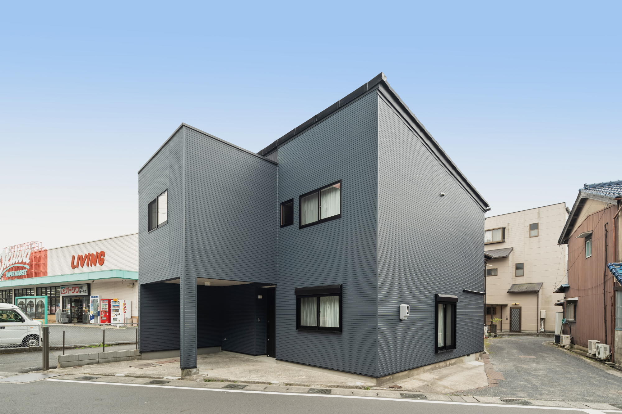 外観はとにかくかっこよく、やわらかくスタイリッシュな紺の外壁を選びました。